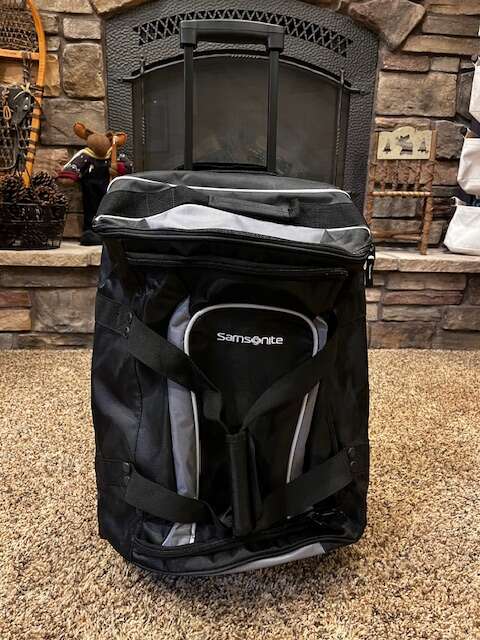 VenmoI have a brand new Samsonite travel duffle bags with wheels. Pull up handle to roll on it's wheels. Probably 25-30 L capacity. Cash or venmo only.