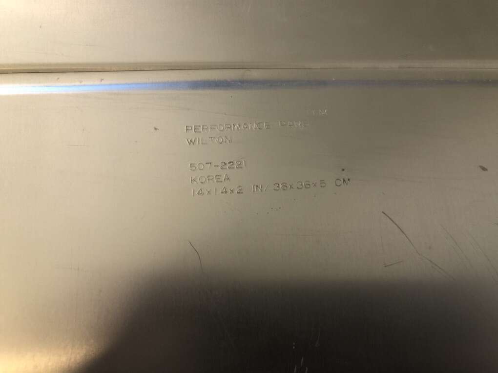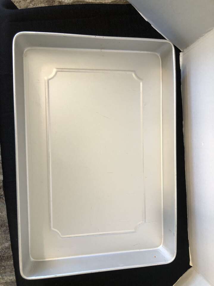 2 Silver Aluminum Wilton performance cake pans 1st pan: 12x18x2 2nd pans: 14x14x2 Will sell separately at 20$