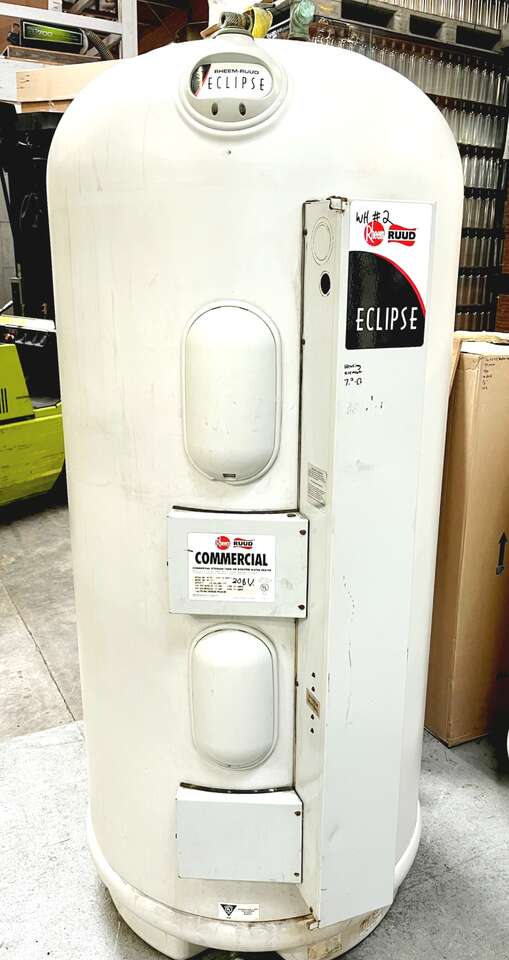 Originally ordered 480V but I moved the hot water heaters after 14 months and replaced the heating elements with 208V 3 ph. The original 480V elements are in excellent condition and are available with the sale as well. The manufacturer date is 2007, however installation wasn’t until 2008. We used the hot water heaters for a process requiring mineral free water at 105 F at 50 psi for 60 minutes 5 days a week. Power and water were disconnected daily when not in use. Due to the high-quality lab water, there is no scale on the heating elements. We redesigned our hot water heating system recently after our flow rate demand quadrupled.