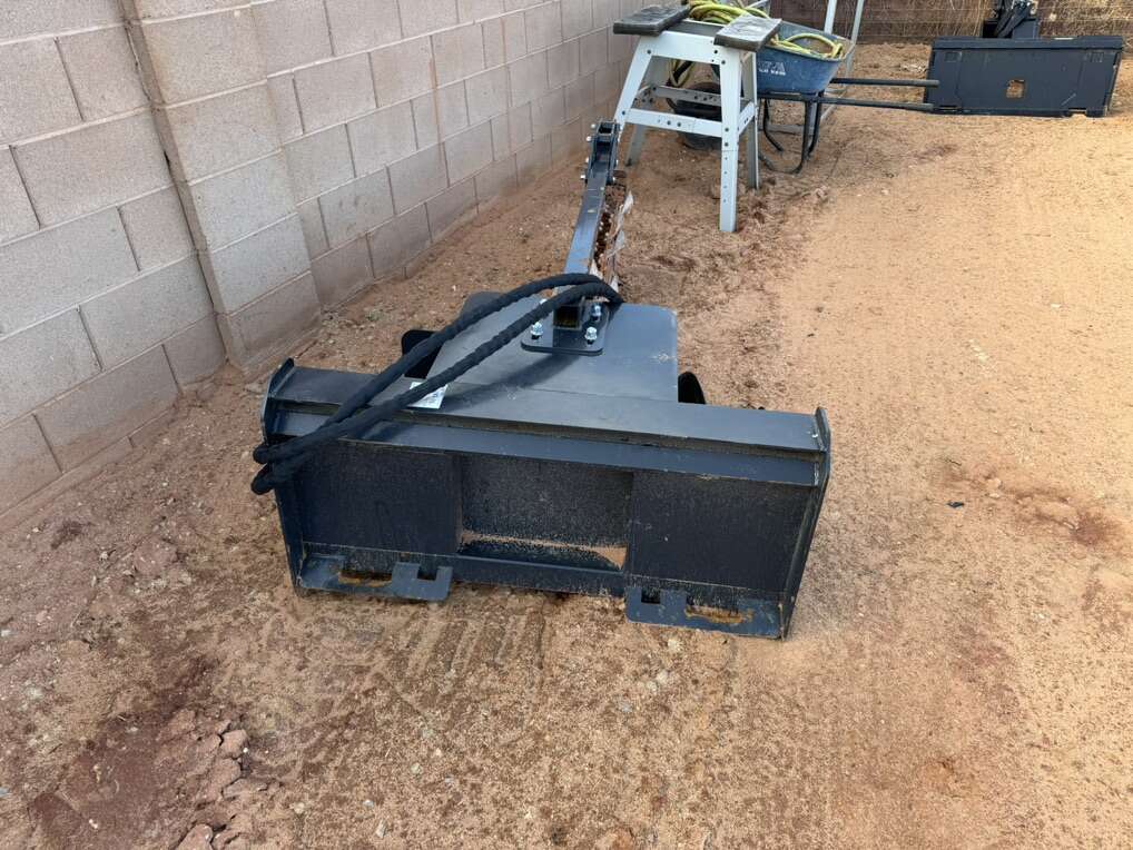 This is a 6’ skid steer trencher that will make your trenching project a breeze. $90 per day. Week and month rates available as well.