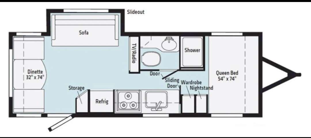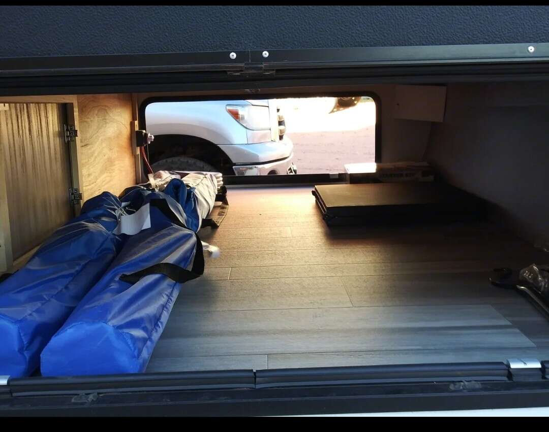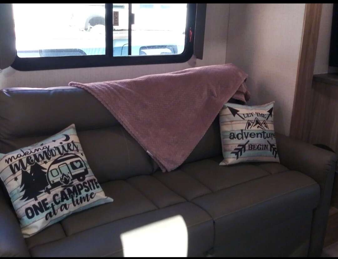 One slide out where the sofa is located in the living area which creates the large space everyone wants for multiple people or a couple to relax. Large screen LED TV, A/V system AM/FM/CD/DVD/USB/Bluetooth with indoor/outdoor speakers, 2 roof vents with roof vent covers. Wireless cell phone chargers, multiple USB charge ports. Power tongue and stabilizer jacks, hot/cold outdoor shower, spray port for more pressure wash down separate. Power awning w/LED lights, heat pads on the holding tanks, LP/Elec. water heater, main control panel inside, SOLAR PANEL AND CONTROLLER-190W
