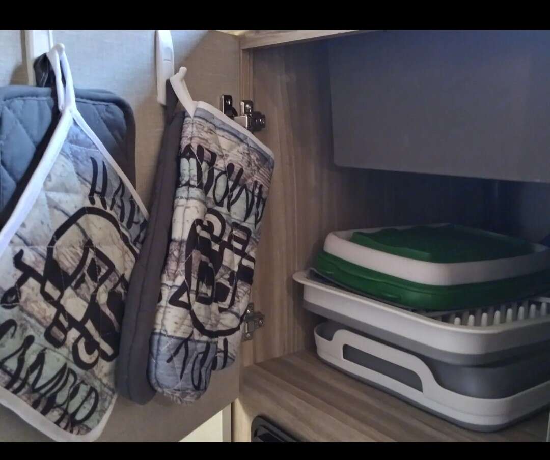 This attractive Micro Minnie 2225RL has a well-thought-out living area with a sofa/bed conversion, dinette that also converts to a bed, lots of spacious cabinets and drawers for storage. The primary is at the front with a queen bed, the living area and entry door is in the rear. The bath is next to the primary bed: a full bath with shower, sink-vanity, toilet and convenient storage cabinet. Kitchen is in the center area: kitchen sink has a window for easy viewing while preparing meals, microwave/convection oven for quick convenience, 3 burner stove, keep drinks and perishables cold in sizable Dometic refrigerator, and keep dry goods in two cabinet pantry by the door.