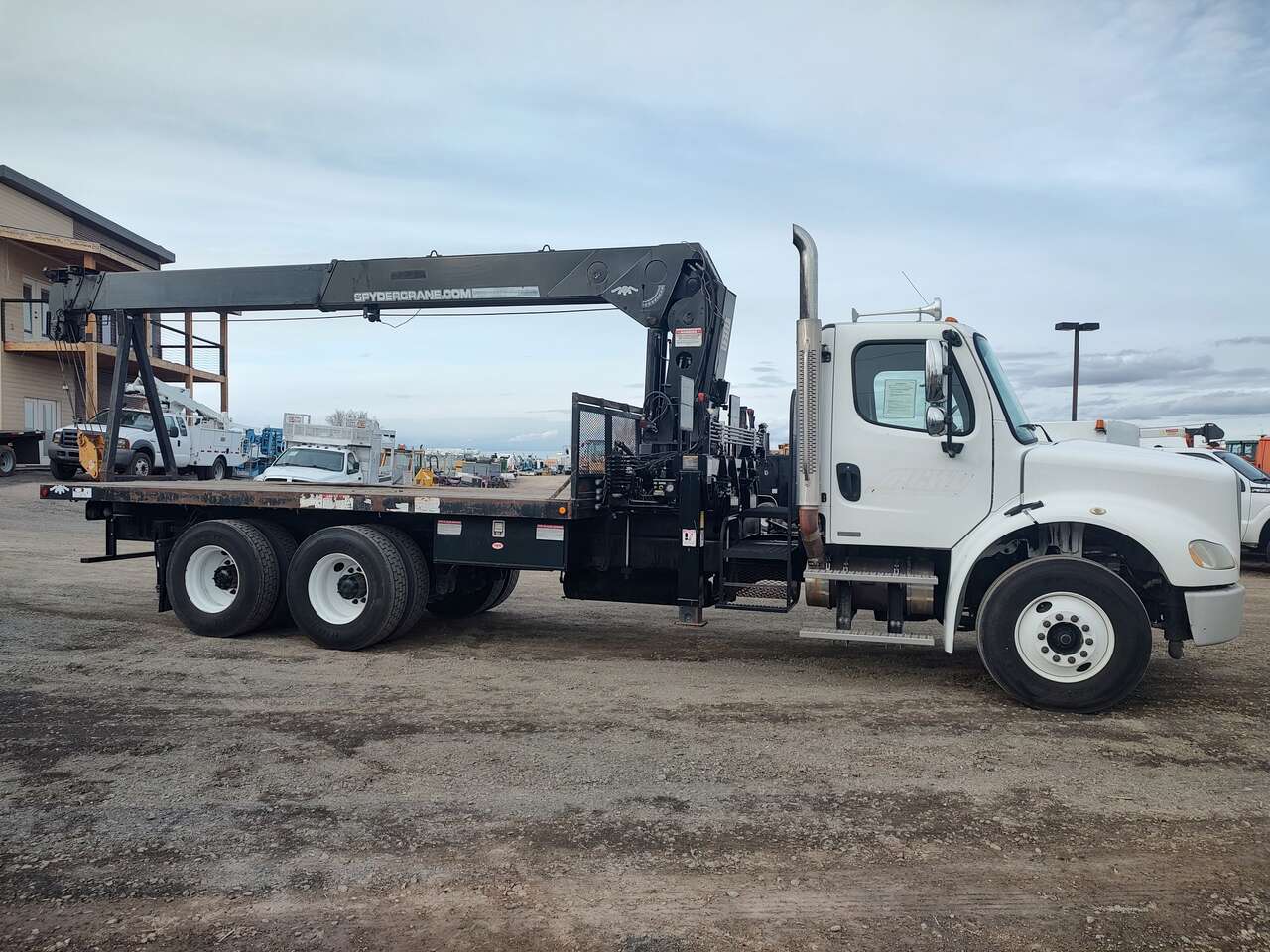 2007 Freightliner M2 112 55' crane truck, 380 horsepower C-13 CAT diesel engine, Allison automatic transmission, 34,000 miles, 3,600 hours, 54,000GVW, 231 hours on the crane, Unic 14,000 pound capacity 55 foot reach hydraulic crane,current certification. differential lock, Hendrickson 4 bag air suspension, good tires, former municipal truck 208-734-3434