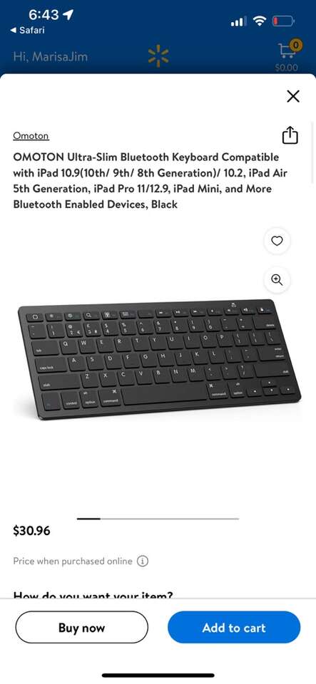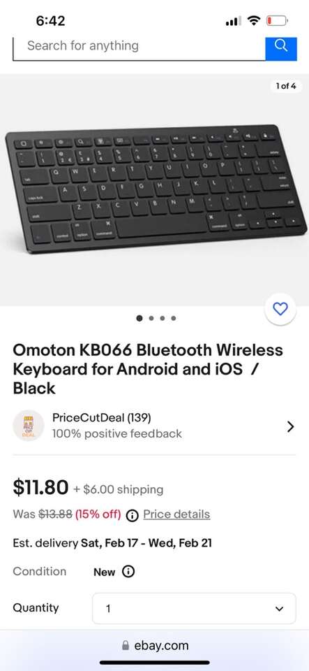 Like new Omoton wireless keyboard model kb066. Works perfectly. Clean non smoking home. Lightweight. Perfect for travel. Easy to set up. Quiet. For home or office. Porch pick up from Alpine. Cash or Venmo.