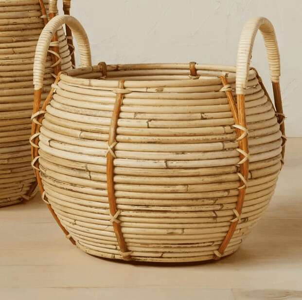Accentuate your globally curated living space with the Round Rattan Basket with Handle from Opalhouse™ designed with Jungalow™. Featuring an intricate rattan construction, this decorative round basket adds natural appeal and texture to your decor, and it's designed with two side stitched handles that make it easy to lift and carry from one spot to another. A great decorative piece you can use to hold potted plants, candles, vases or more, this rattan basket will help round off your shabby chic decor style.