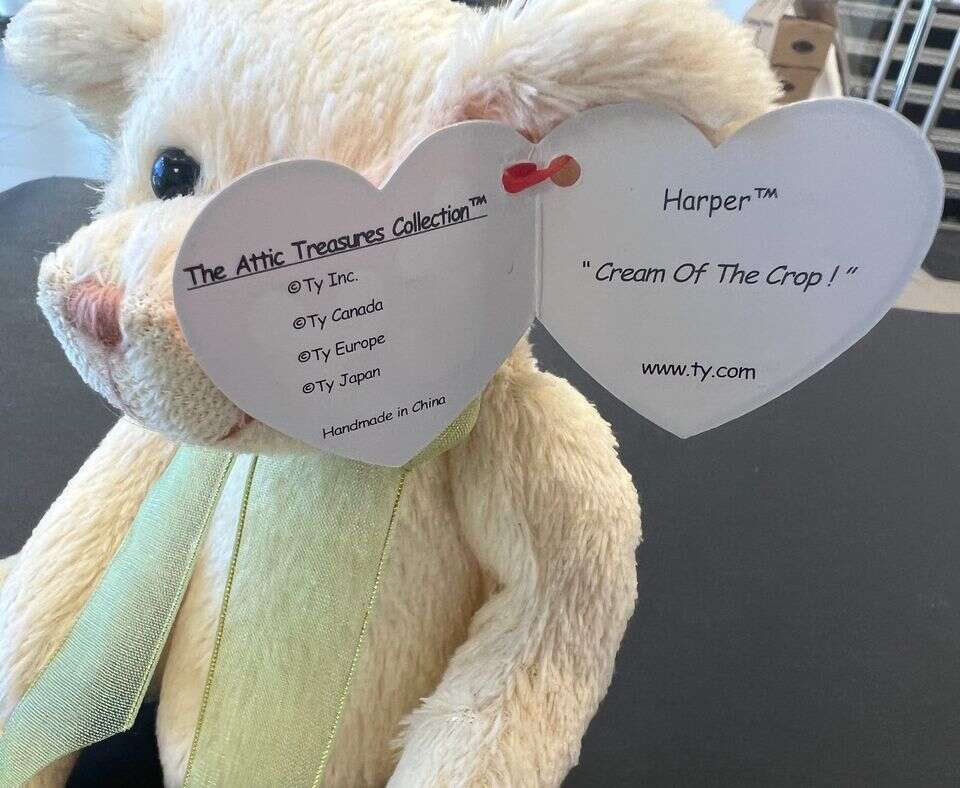 VenmoTy “The Attic Treasures Collection” Harper. 1993 I’m selling this retired 1993 bear in super condition. It never has been played with. Her name is Harper “Cream of the crop” Beige plush bear. 7 inches. Black bead eyes. Mouth and hands are stitched on. $20 Pick up in Lehi, Provo or Salem