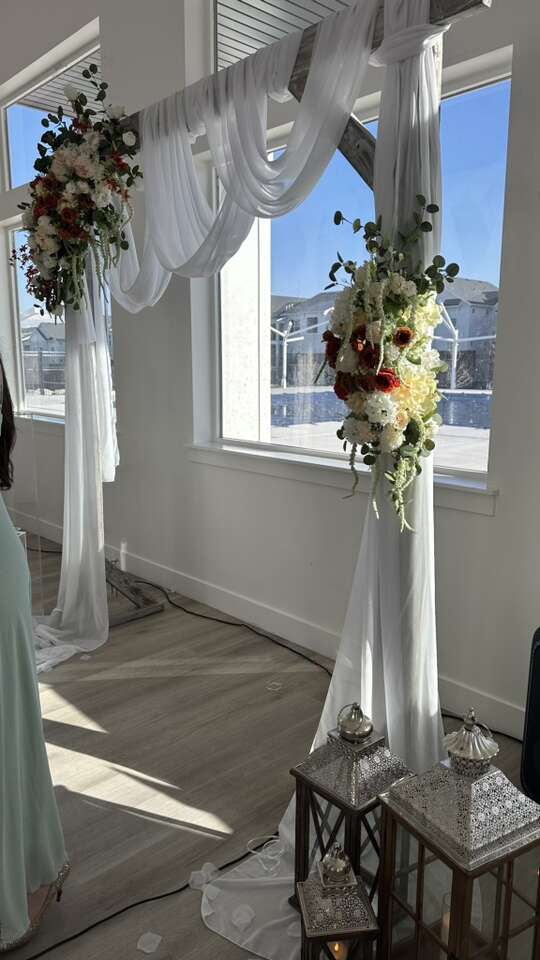 This beautiful, distressed looking wedding arch will add to the focal point of your special day. \