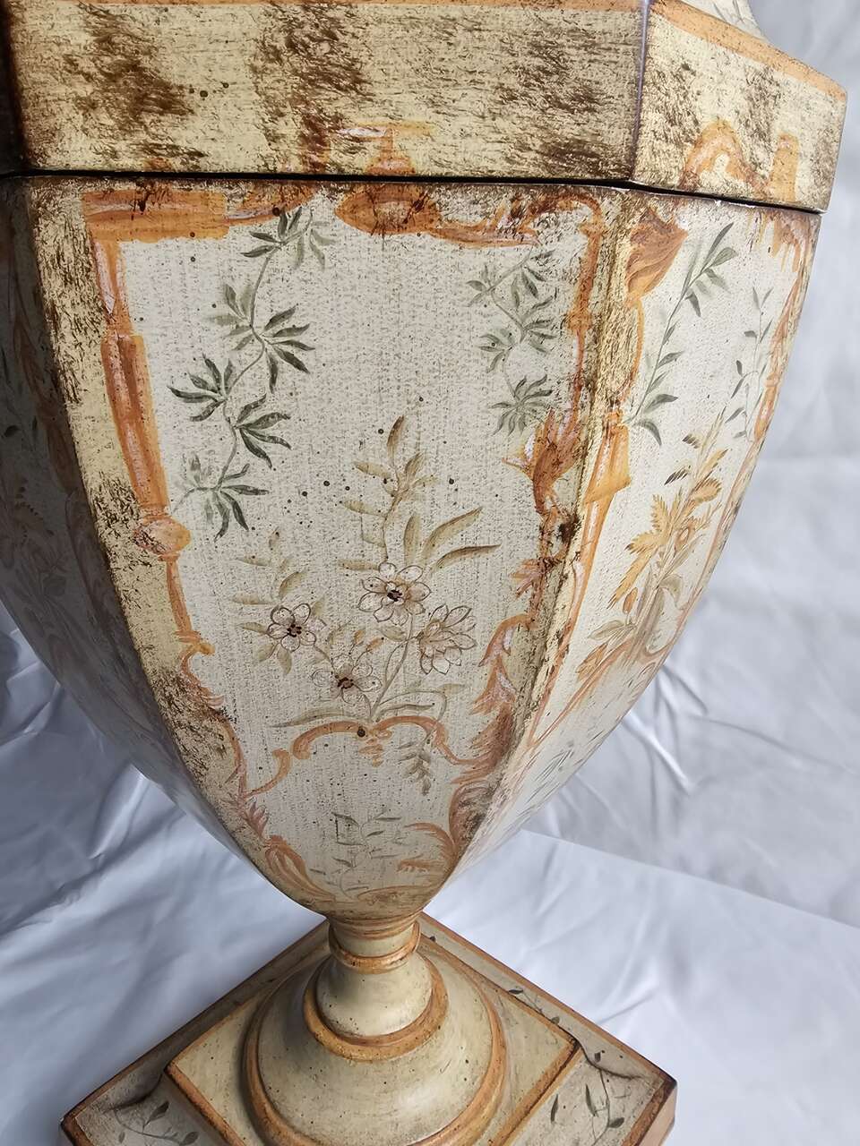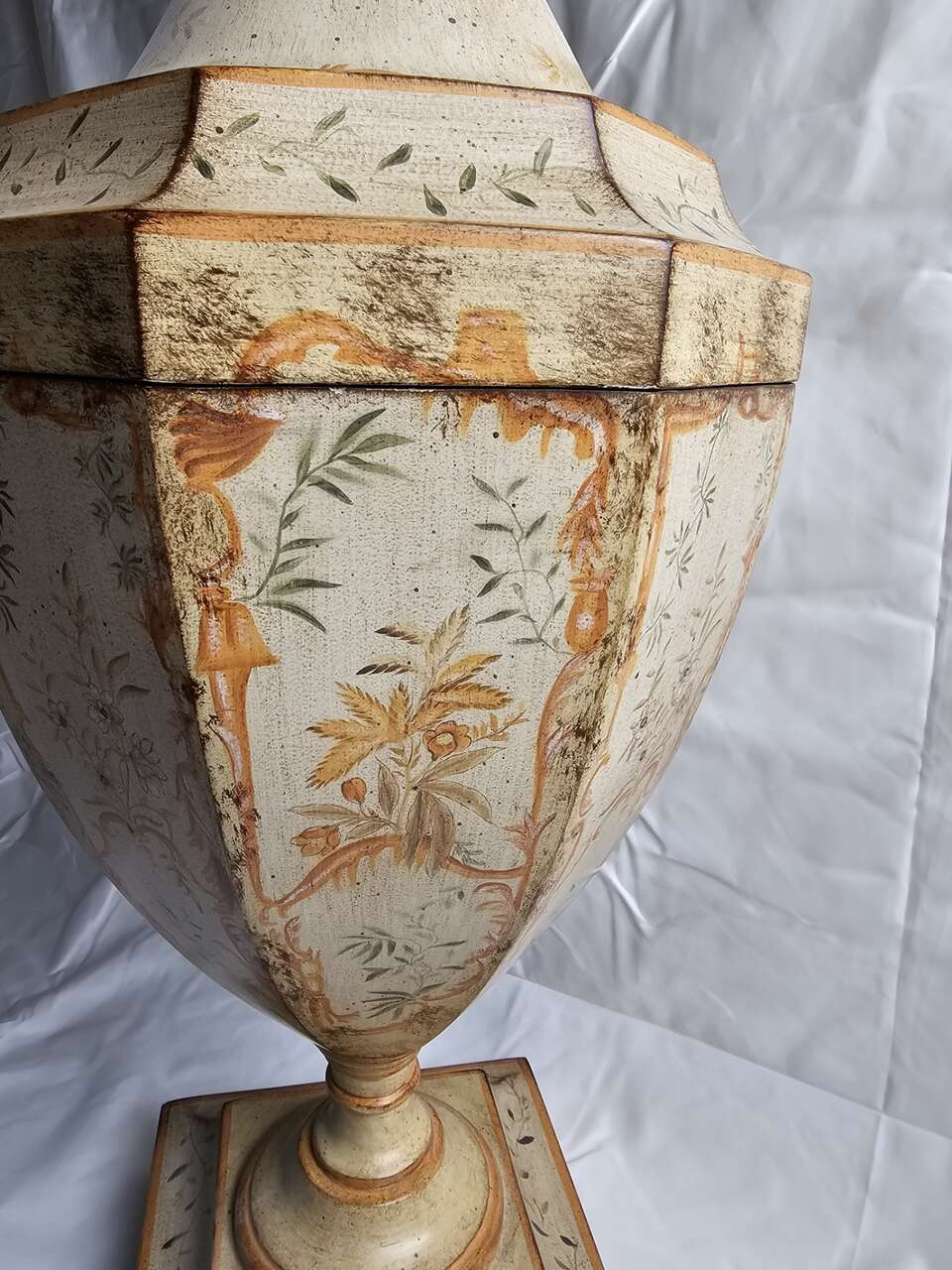 PayPalBeautiful hand painted lidded vase pair. They are 30" tall and 11.5" wide at the widest point.