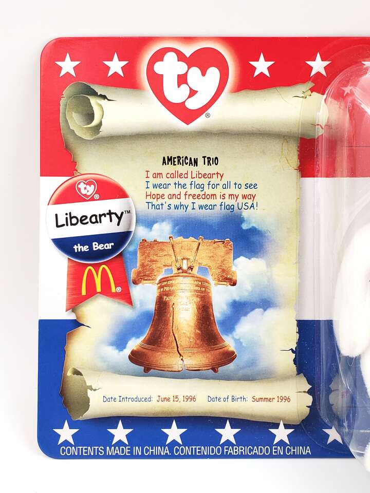McDonalds “Libearty the Bear” collectible from Ty Teenie Beanie Babies 2000 “American Trio” collection.
