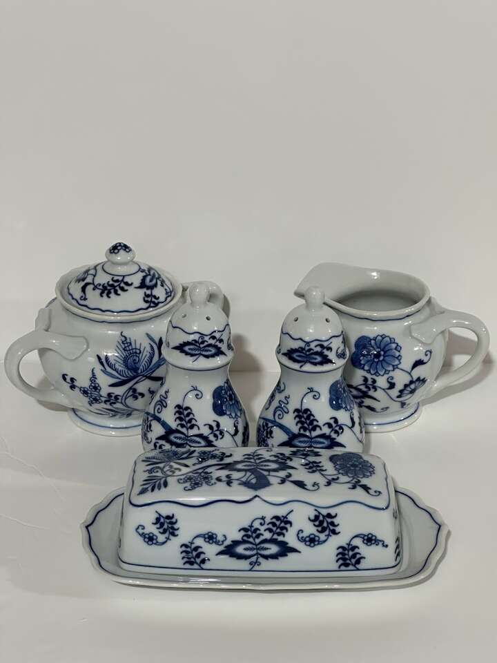 8 Dinner Plates~7 Salad Plates~8 Dessert/Bread & Butter Plates~8 Coffee Cups~8 Coffee Saucers~8 Rim sided Soup Plate Bowls~8 Cereal Bowls~4 Mugs~"Completer Set"~Gravy Bowl~ Creamer~Sugar Bowl~Butter Dish~Salt & Pepper Shakers~/ 8 Matching Tumblers ~Glasses~Blue Danube/ 5 Matching Tumblers~Glasses~Blue Danube~8oz/ 3 Matching Short Tumblers~Glasses~Blue Danube~8oz /6 Champagne Flutes/