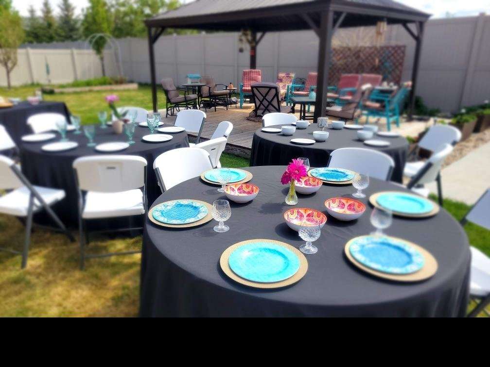 $10/Table $2/Chair Black & White Linens or Any color plastic Multi-day discount