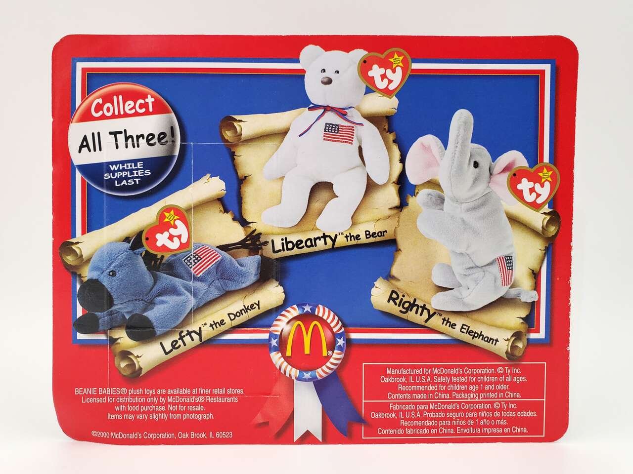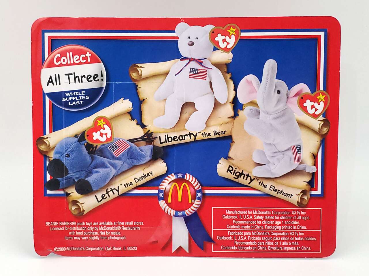 Set of 3 McDonalds “American Trio” collectibles from Ty Teenie Beanie Babies.