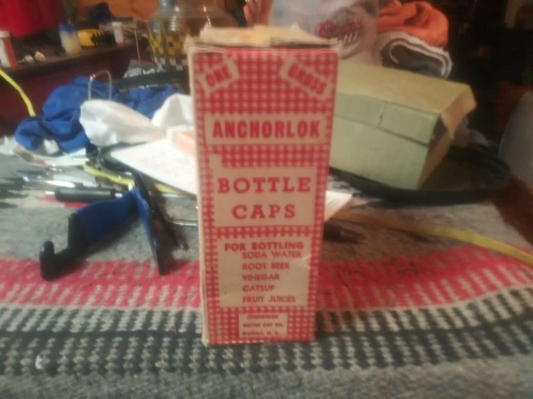 Box of antique bottle caps from 40's. Seems to be all there. I only answer phone calls. Thank you for looking.