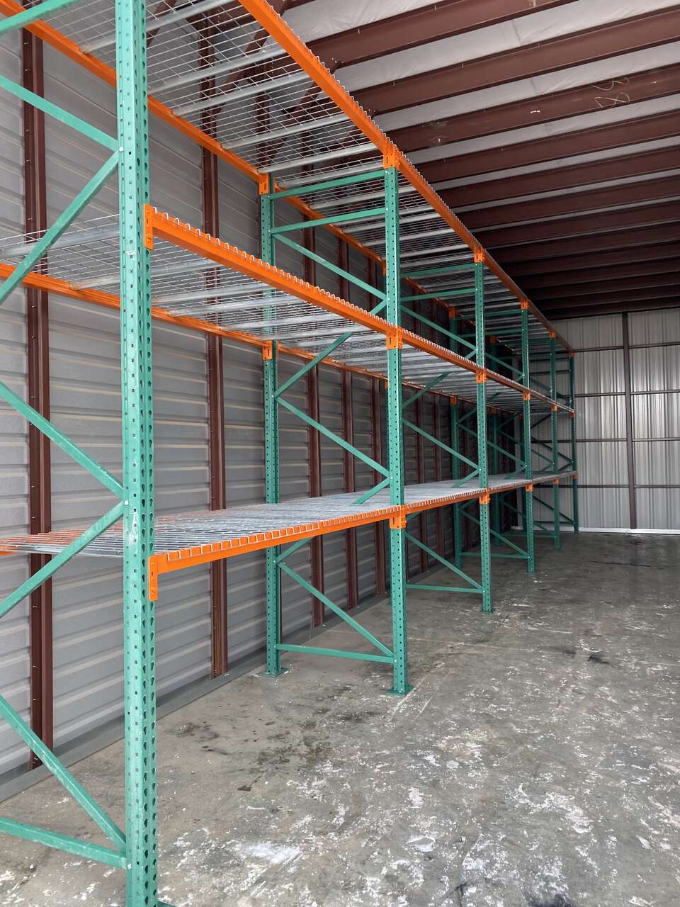 Brand New Storage Shelving. Very easy to assemble. No bolts needed. They just snap together. (Go to our website bl-palletracking.com to watch a video on how easy they are to install.) We are confident we offer the best quality and prices around!!!