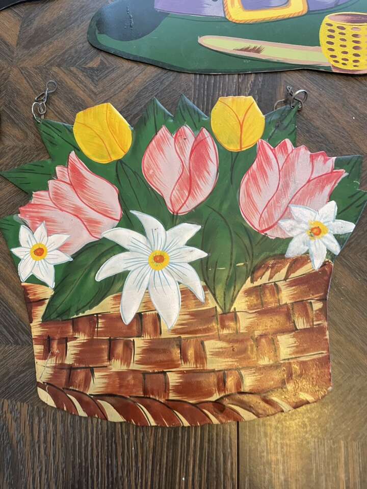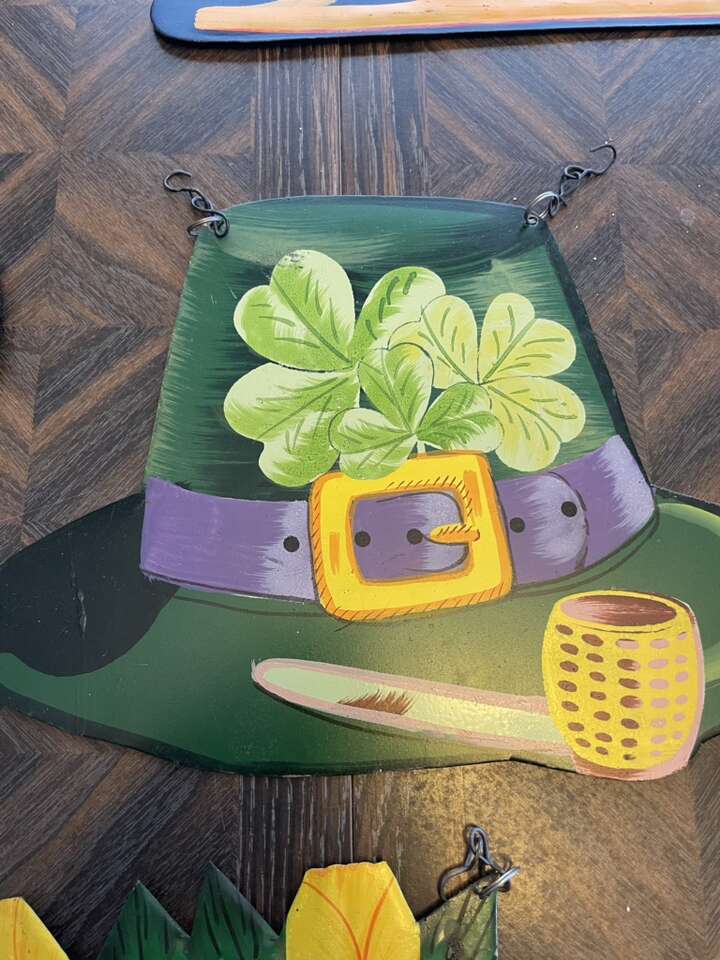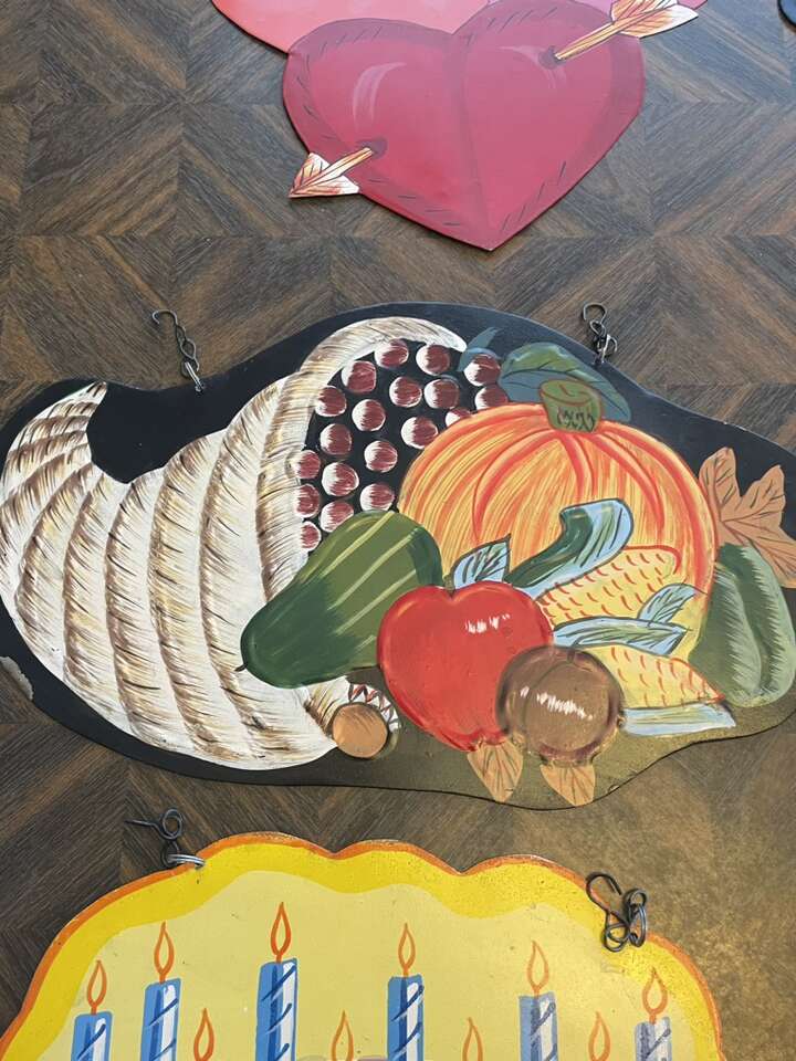 Amazing set of 9 vintage metal hand painted holiday and birthday signs. All have hooks and are in very nice condition.