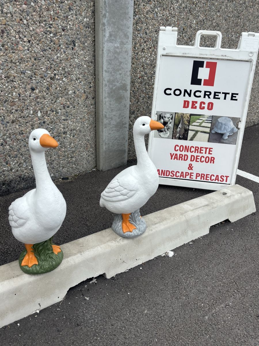 ApplePayNew Concrete porch goose available for $60, it is 23 tall. Weights 46 lbs of solid concrete.
