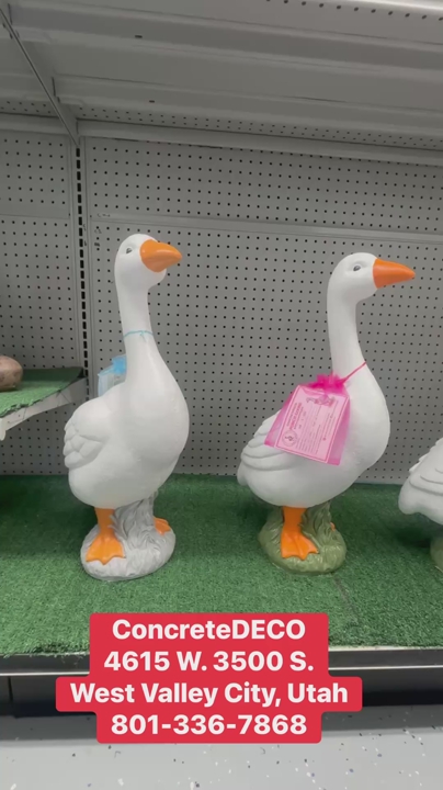 ApplePayNew Concrete porch goose available for $55, it is 23 tall. Weights 46 lbs of solid concrete.