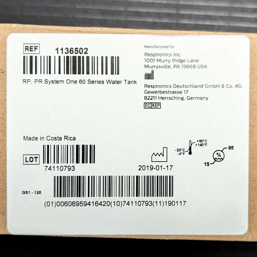 New in box Respironics System One 60 Series Water Tank, ref 1136502.