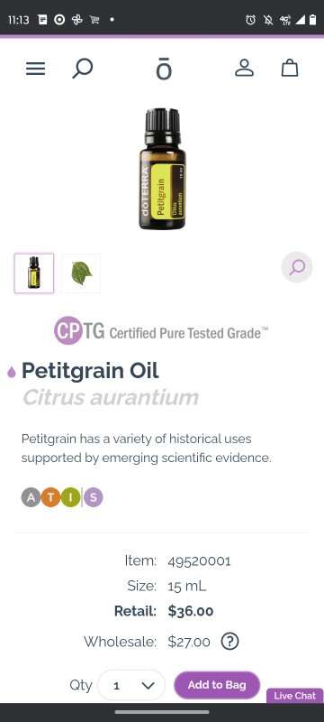 VenmoI have a partially used, 15 ml bottle of doTERRA's Petitgrain essential oil. MORE than 3/4 full. It is "expired", but if you're familiar with high quality essential oils, you know they are good for many years past their expiration date. (I can attest to this after using them for many many years.] Bottle is clean and mostly full, just find I am not using this one and I am downsizing my collection. Because it is used and the expiration date, I am selling this for below wholesale at $22 cash or Venmo. Will hold with Venmo. Text if interested. Feel free to check out my other ads-lots for sale. Thanks for looking!