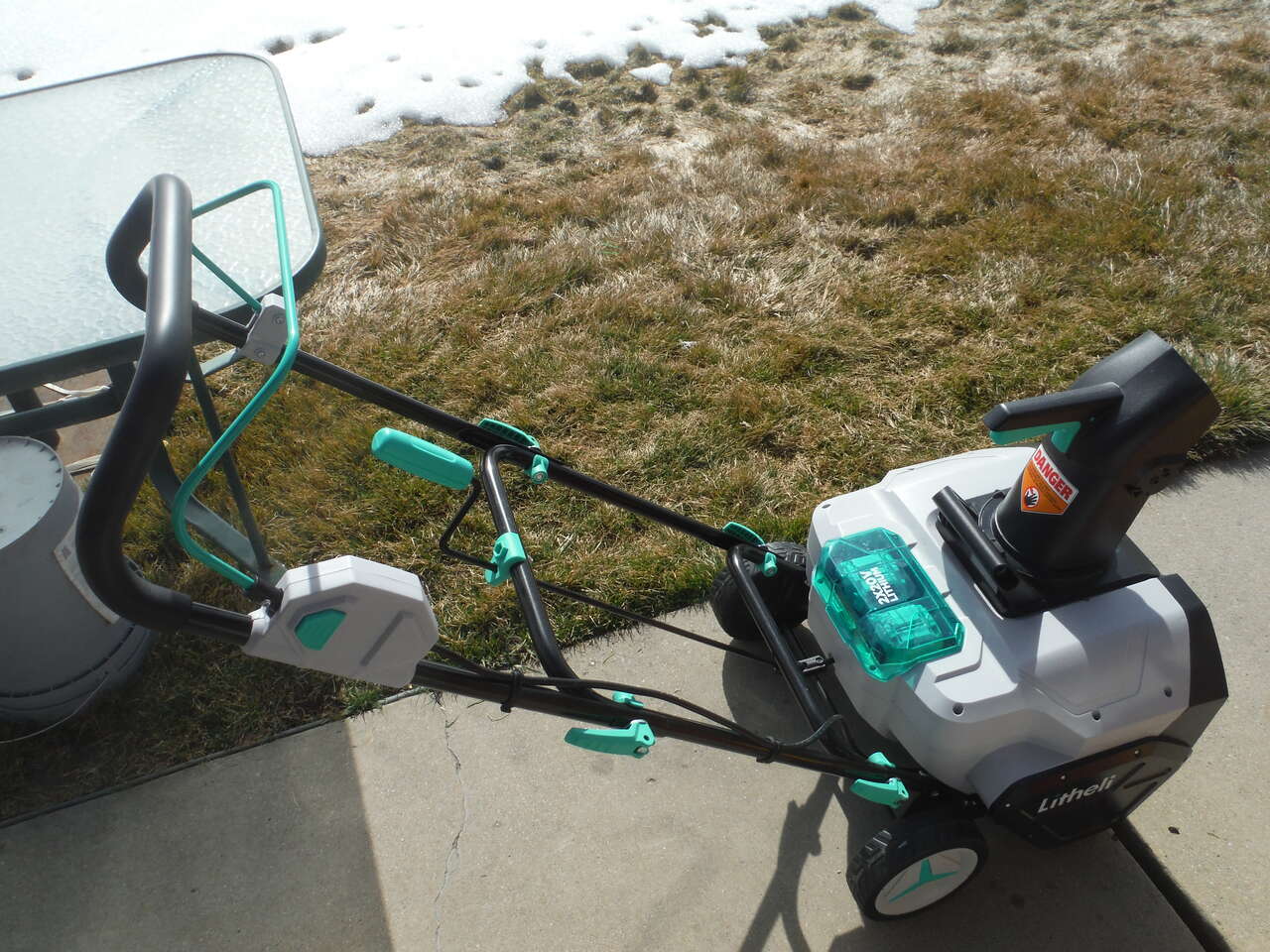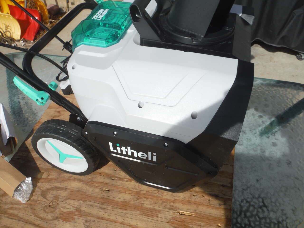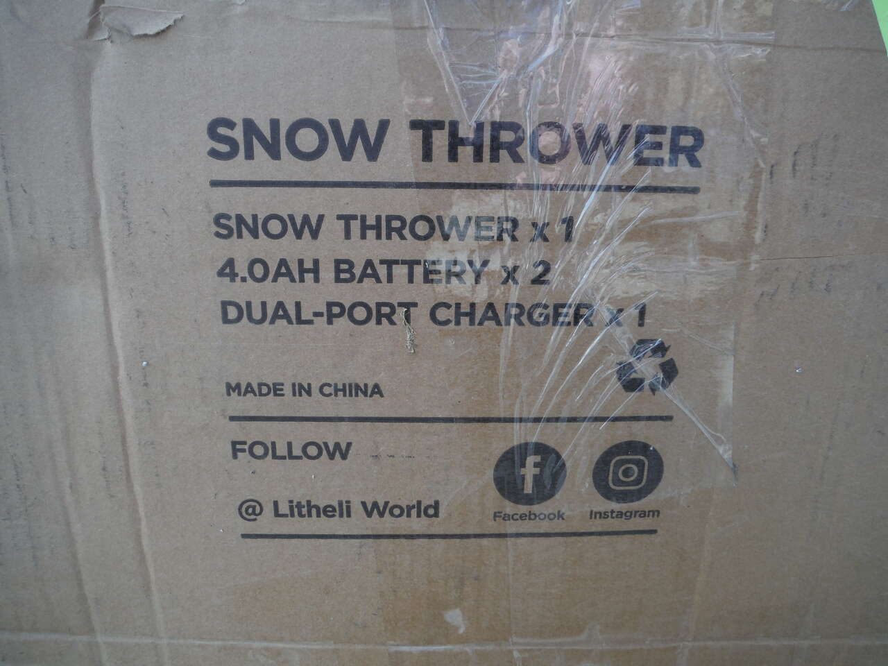 Litheli Cordless Snow Blower. This is a complete cordless snow blower. This is complete with batteries and charger. This looks brand new but it does show a some small signs of use. The batteries have been charged and tested. This is a snow blower that was returned to the place of purchase because the shoot for the snow would not swivle right or left. I have repaired this and it works great. This does show some very small signs of use. But I do not thing that it was used for more than just a few minutes before it was returned to the place of purchase. If interested please send a test to 801-836-0653. Price is $195.00. Serious inquires only. Will respond to text only to start communicating. Do not call.