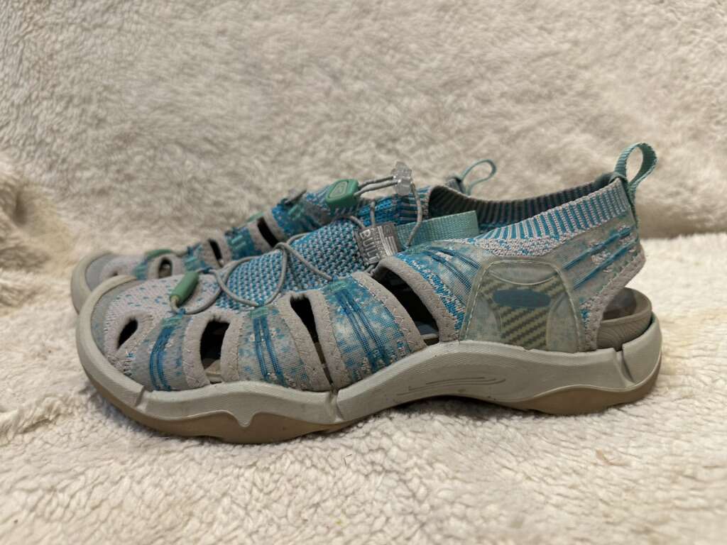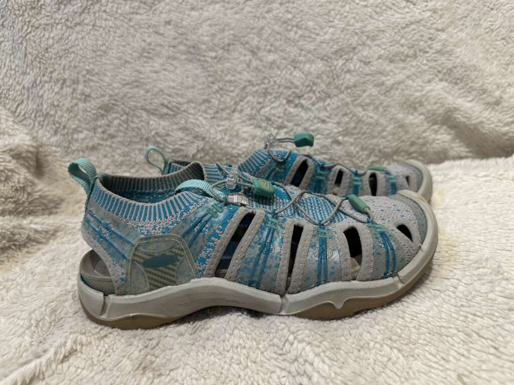 Keen women’s size 8.5 gray/beach blue woven beach sandals in excellent condition. See photos for details. I take cash or Venmo, but cash is preferred. Text is best. 801-201-4446. Check out my other ads for additional sizes and styles.