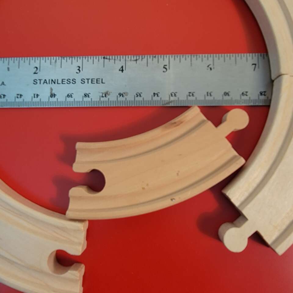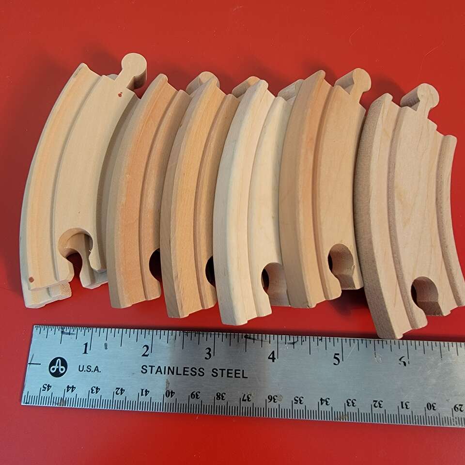 VenmoBrio/Thomas and Friends Wooden Railway 3 in. Curved Track. Lot of 8 Pieces, Full Circle. Treads are on both sides of the track so it can fit in either direction. Hours of creative playtime for your child with a wooden railway set. Vintage, Excellent Condition! Please see seller’s other Brio and Thomas & Friends listings. Cash or Venmo. Coming from a clean smoke free home. Thank you for looking!