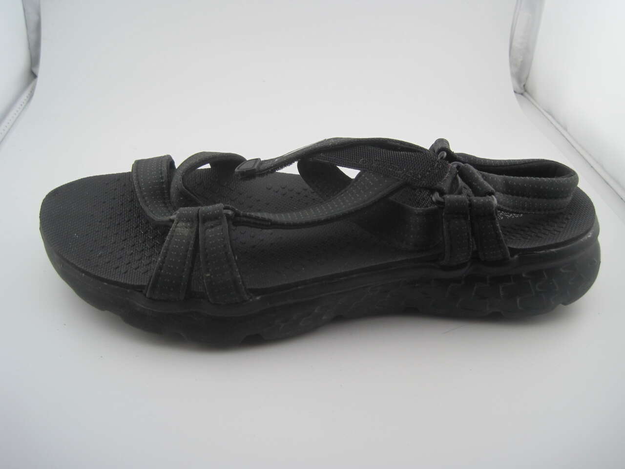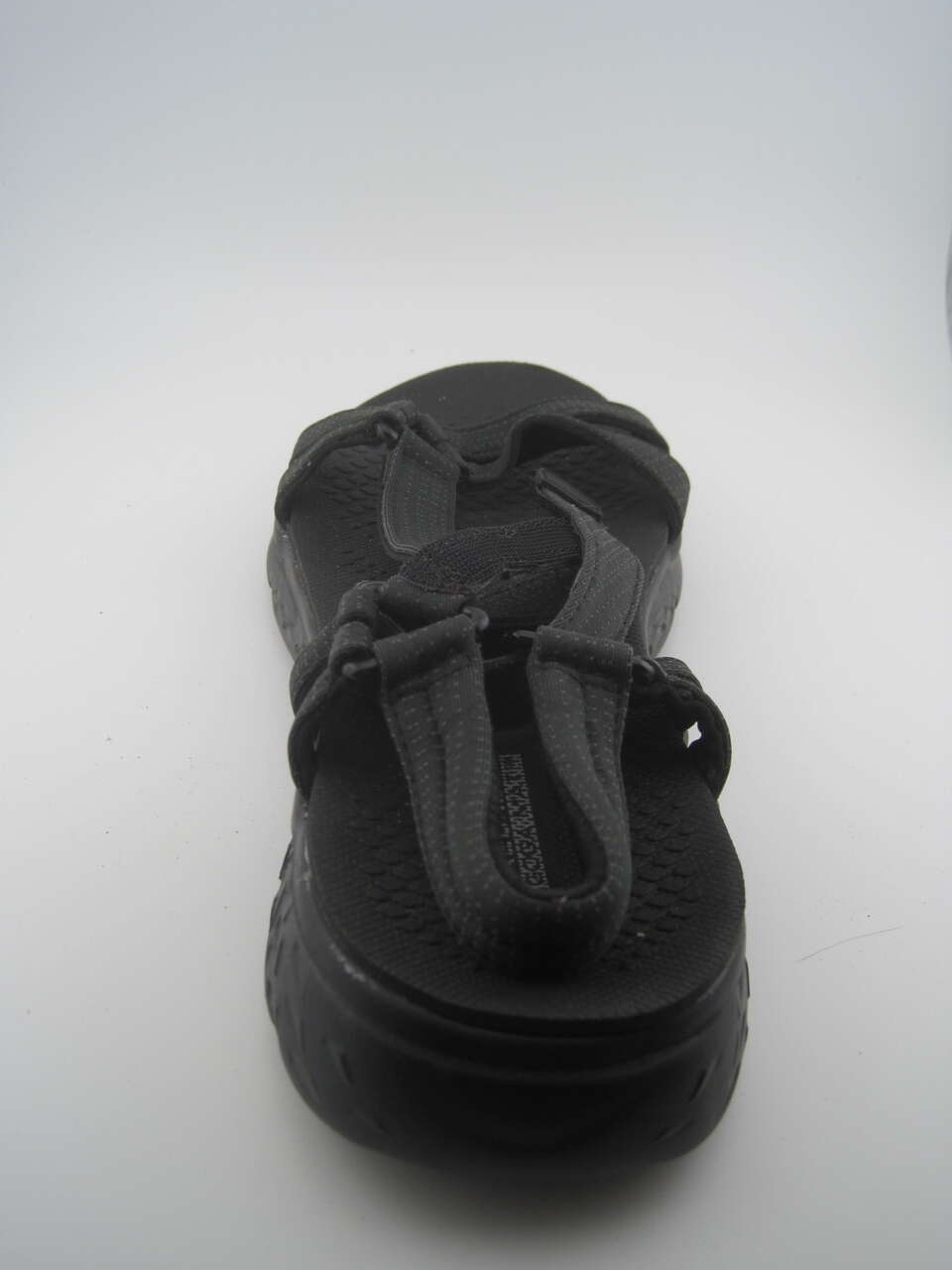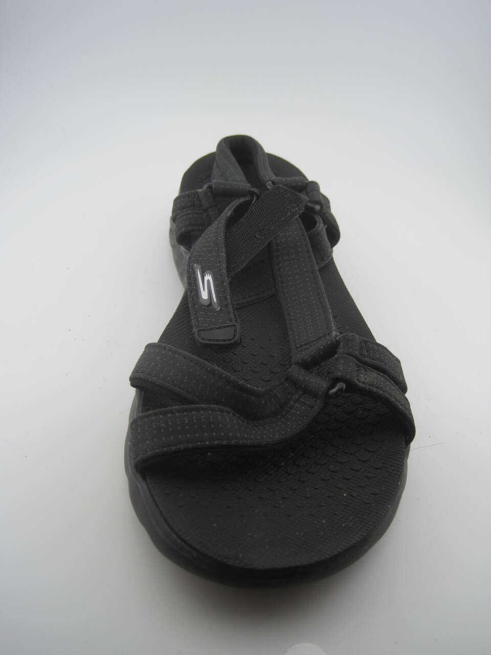 Step into comfort and style with these Skechers On The Go 600 Brilliancy sandals. The black mesh upper material is breathable and perfect for summer, fall, and spring. The slip-on style features adjustable straps for a customized fit and a flat heel height of under 1 inch for ultimate comfort. These sandals also come with a cushioned and padded insole made of foam, adding to the overall comfort. The outsole is made of rubber for durability and the Skechers logo adds a touch of accent. Perfect for casual occasions, these sandals are for women who are US size 7 or UK shoe size 4.