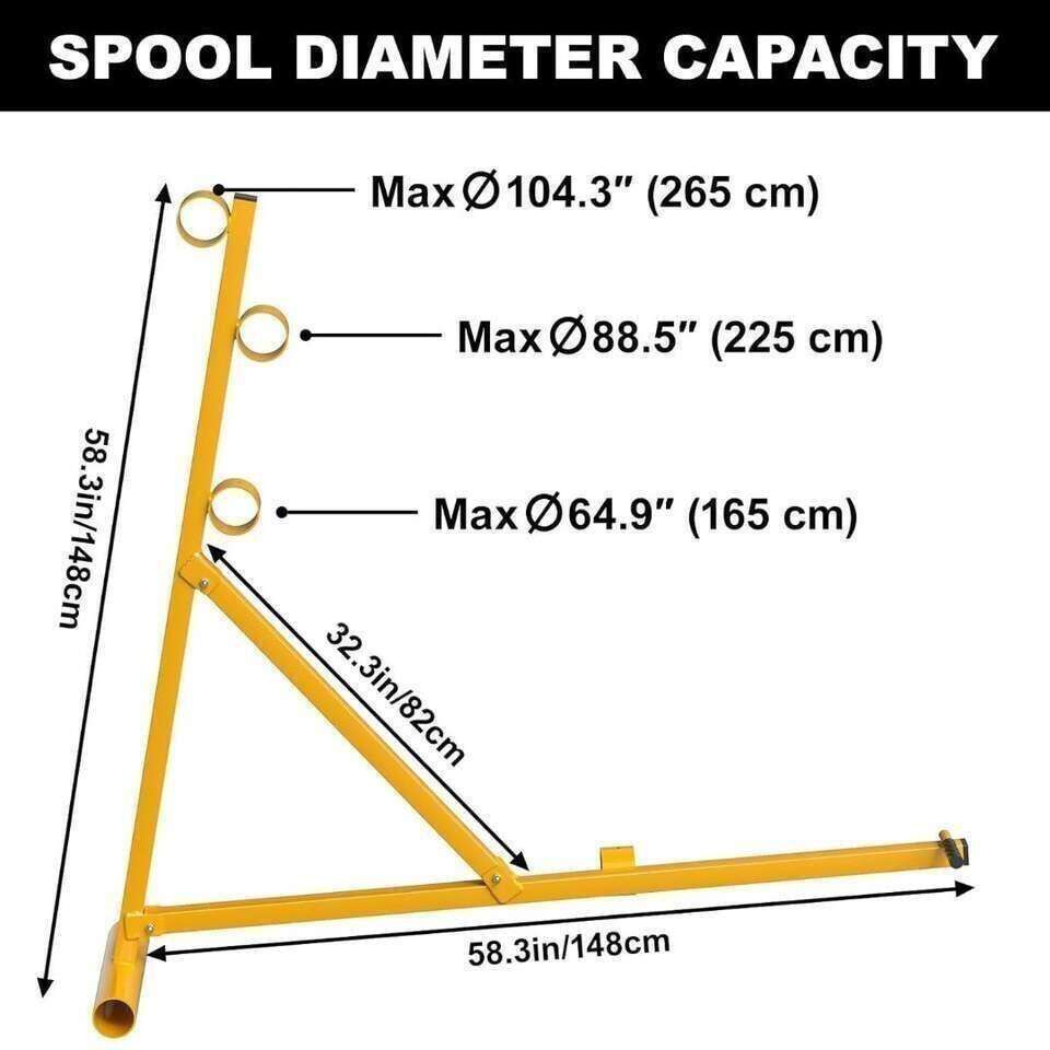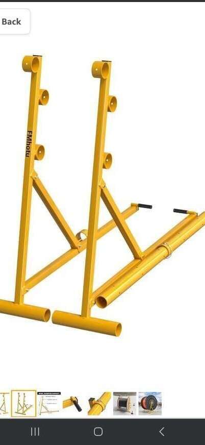 Costs $350-$400 online Heavy Duty Portable Reel Buck,Yellow Wire Spool Rack Load Capacity Of 2000 Lbs.Adjustable Reels Rack Wire Pulling Tools For Wire Puller And Pipe Spools Description Heavy-duty steel cable holder (yellow), made of sturdy steel, strong and durable material, warp-proof, rust-proof and corrosion-resistant. Adjustable, foldable and portable setup and breakdown for easy transportation. Painted in bright yellow for added safety. About this item High performance materials:Heavy-duty steel cable holder (yellow), made of sturdy steel, strong and durable material, warp-proof, rust-proof and corrosion-resistant. High load-bearing capacity:Load Capacity of 1,000 lbs to withstand tough job sites Fast and convenient:Adjustable, foldable and portable setup and breakdown for easy transportation. Widely applicable:Accommodates reels up to 98" inch diameter Safety:Painted in bright yellow for added safety.