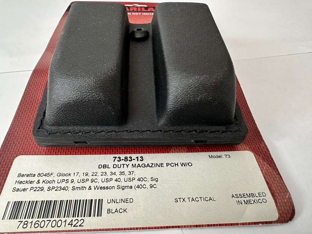 Safariland Double Magazine Pouch Model 73 Brand new in original packaging Adjustable retention Ideal for gun models: Beretta: 8045F, Glock: 17, 19, 22, 23, 34, 35, 37 Heckler & Koch: USP 9, USP 9c, USP 40, USP 40C Sig Sauer: P229, SP2340 Smith & Wesson: 40C, 9C