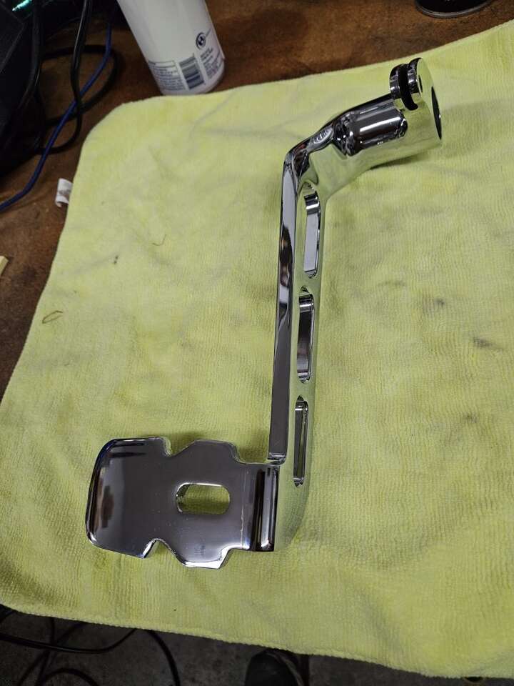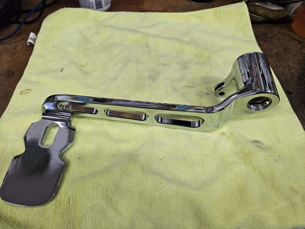 Chrome billet aluminum rear brake lever for H-D touring bike. Model number 42638-08A for 2008-2013.