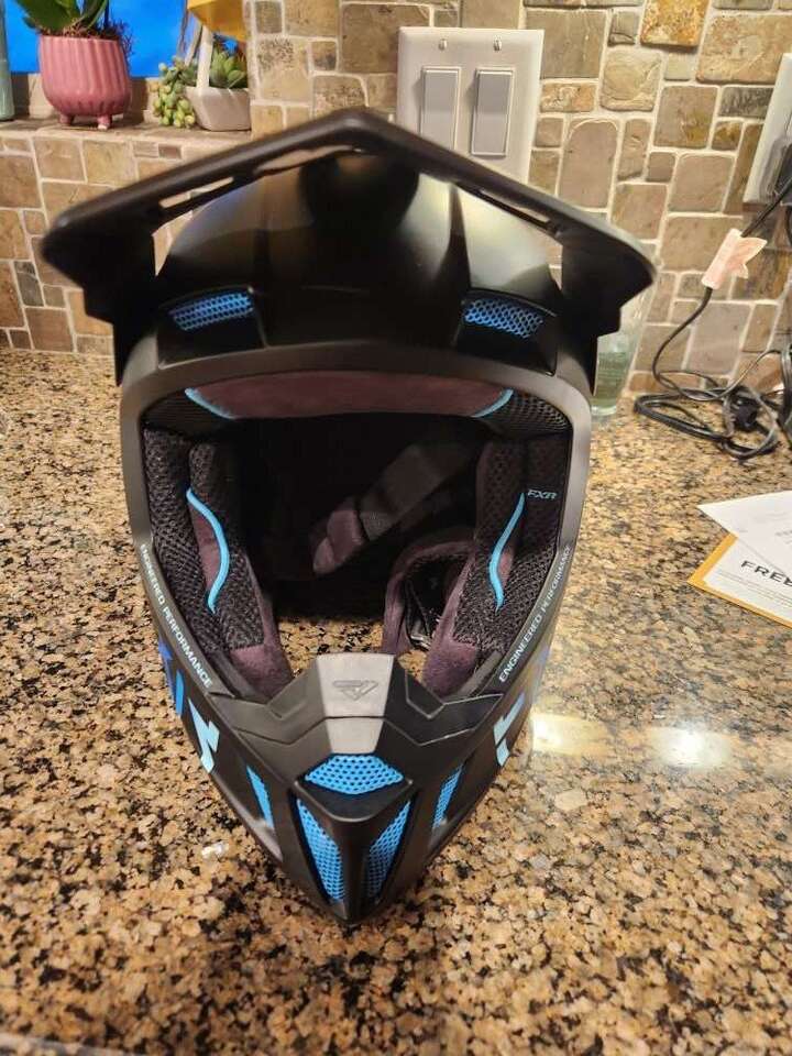 FXR helmet. Adult size small. Paid $185.00 for it. Asking $160.00. Comes with a set of quick straps for your goggles.