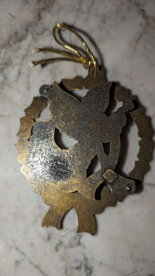 Add a touch of vintage charm to your holiday decor with this beautiful Gloria Duchin ornament featuring an angel blowing its horn.