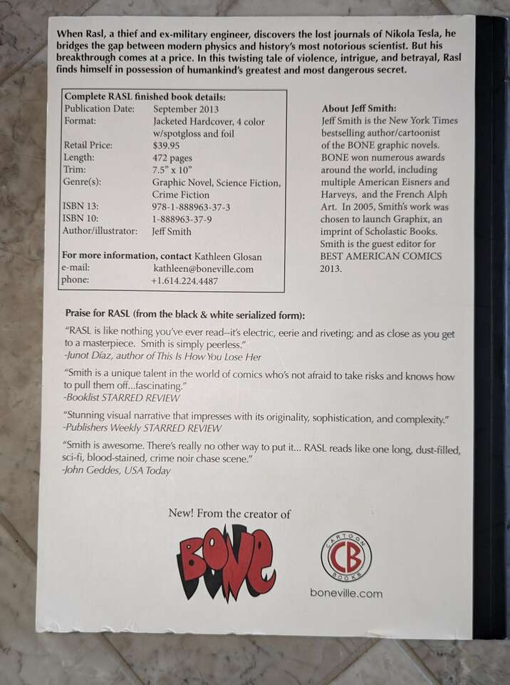 Author: Smith, Jeff Title: RASL Publication: Columbus, OH: Cartoon Books, 2013 Edition: First Edition