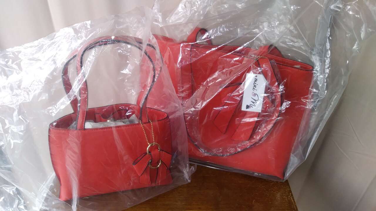 VenmoNew with tag & original packaging. A set of ‘Katie’ Mini & Me handbags in red by Boutique To U, 2 pieces. Perfect for women and young girls, this adorable matching bag set was created and designed by nine year-old Katie Burgin with a little help from her mom, Boutique to U owner, Kelly Burgin. The ‘Katie’ purses are hand sewn and made of high quality vegan leather.