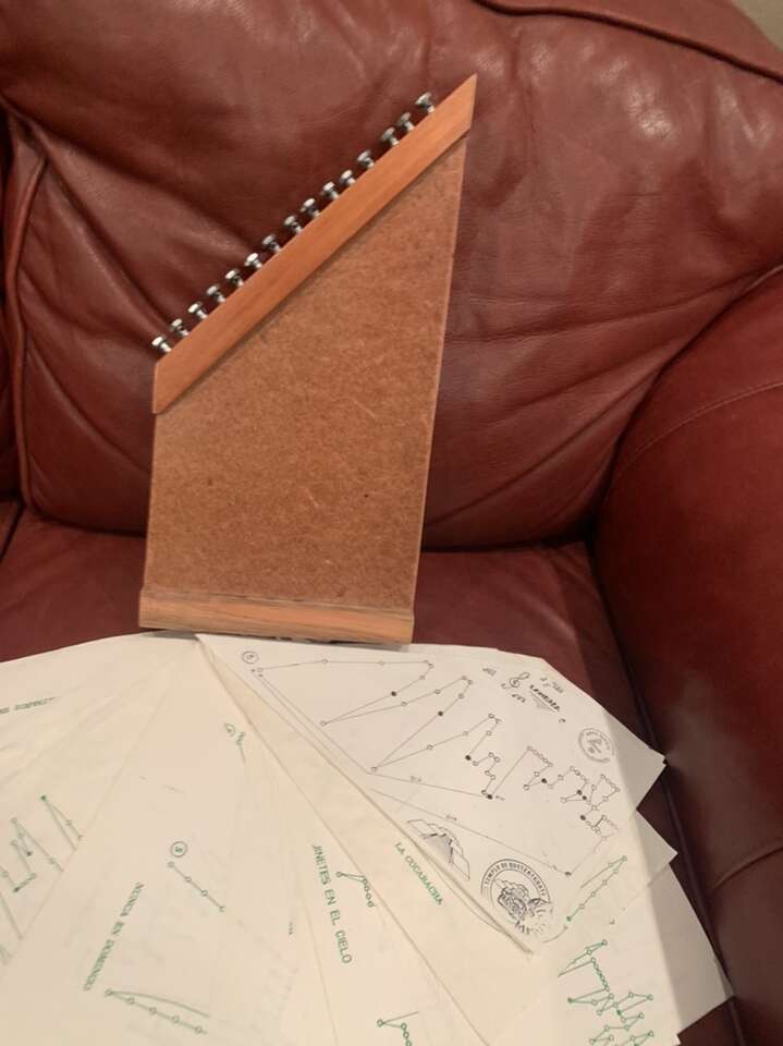 Vintage beautiful Arpa Magica 15 string. 16 inches talk by 8 inches. Included 31 pieces of sheet music. $40.