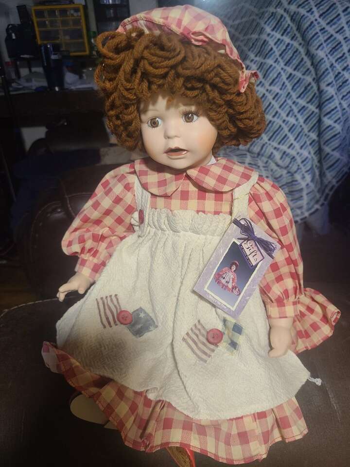 Family Estate Sale Text 801.510.7404 Betsy Tea Time-House of Lloyd 12 inches sitting Left arm is loose from attachment Left shoe sole is missing