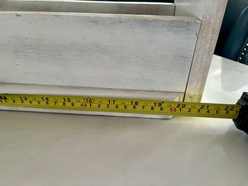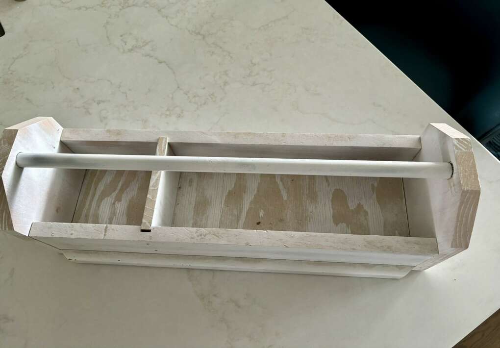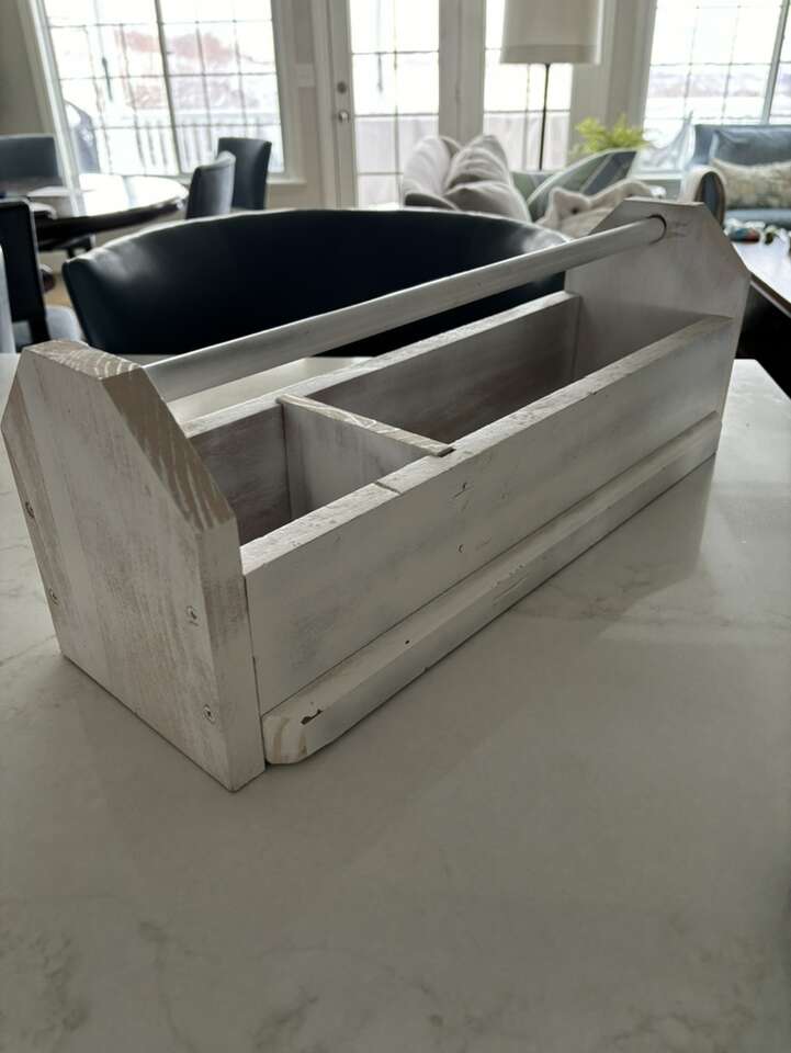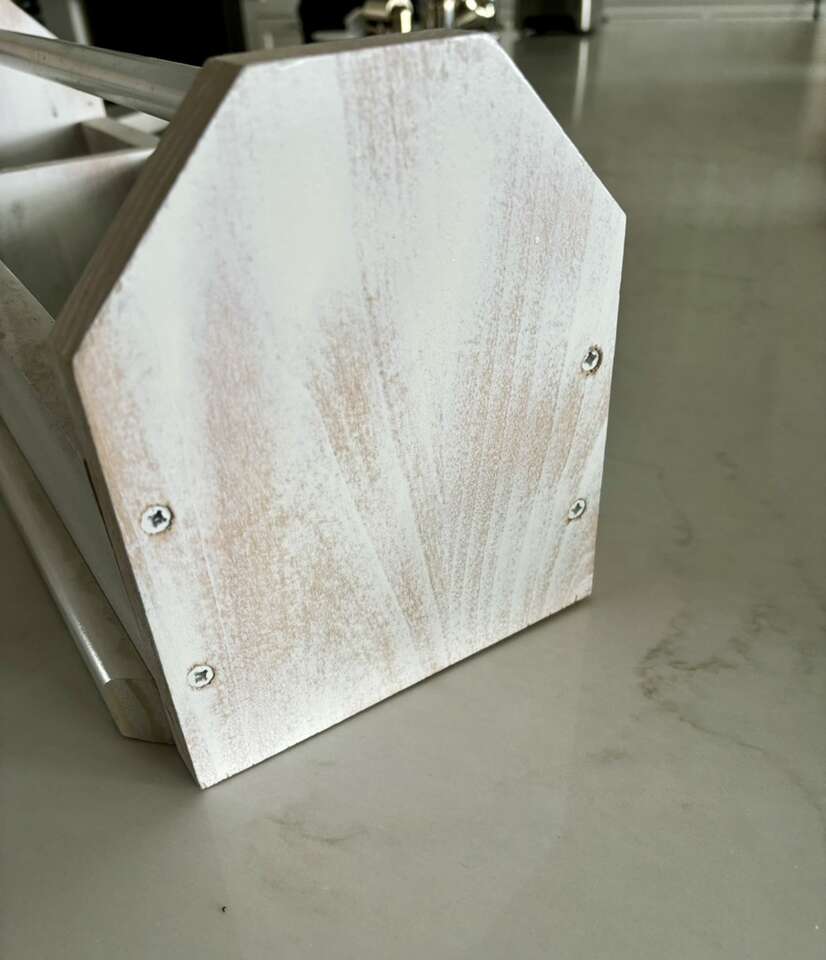 Painted solid wood with a metal handle
