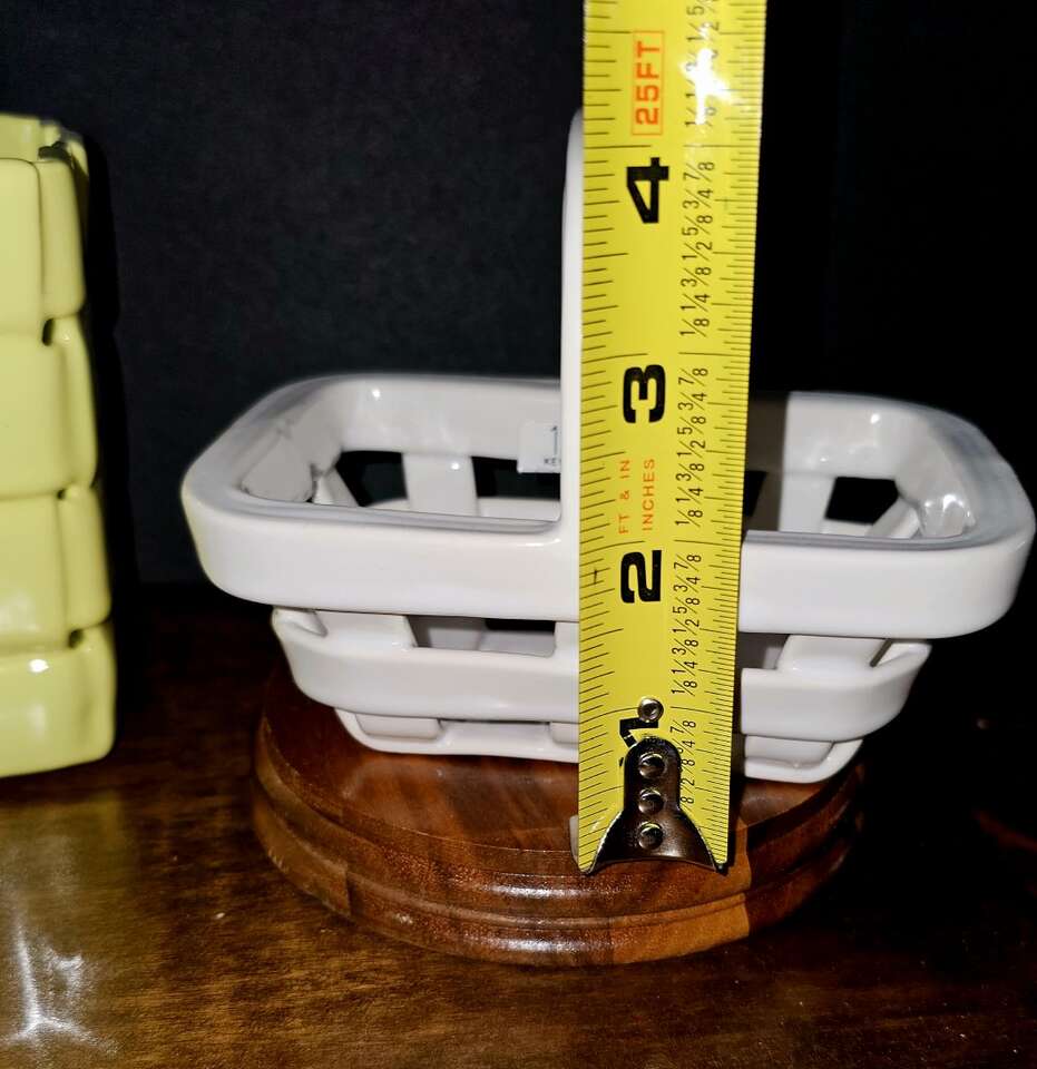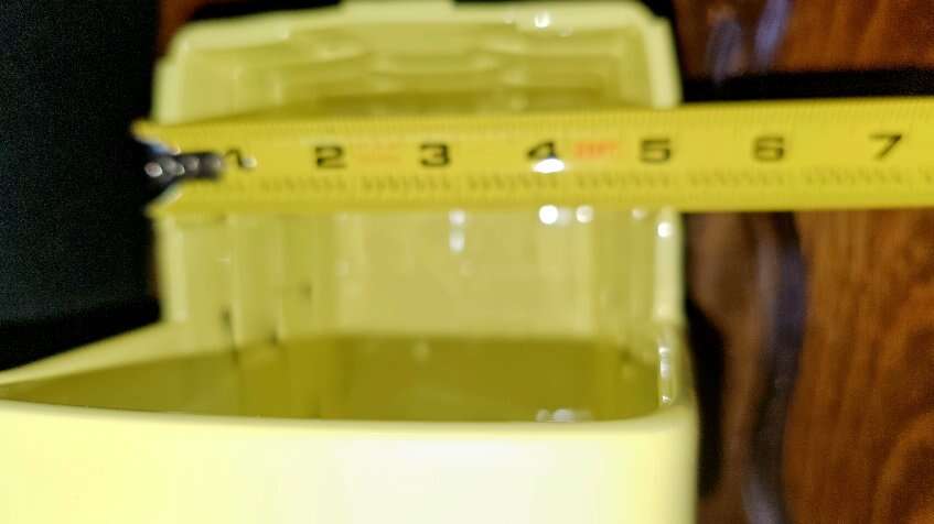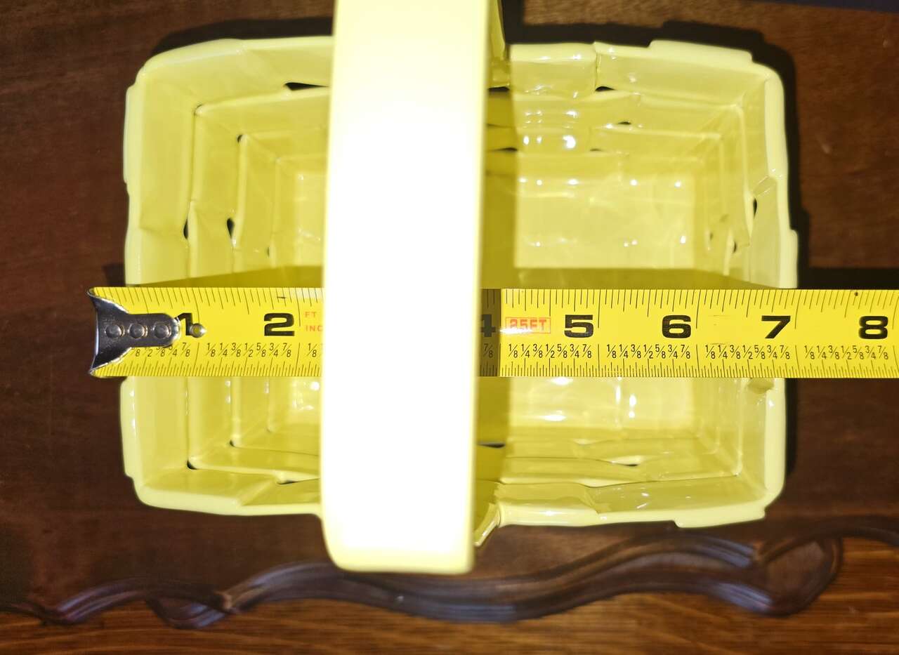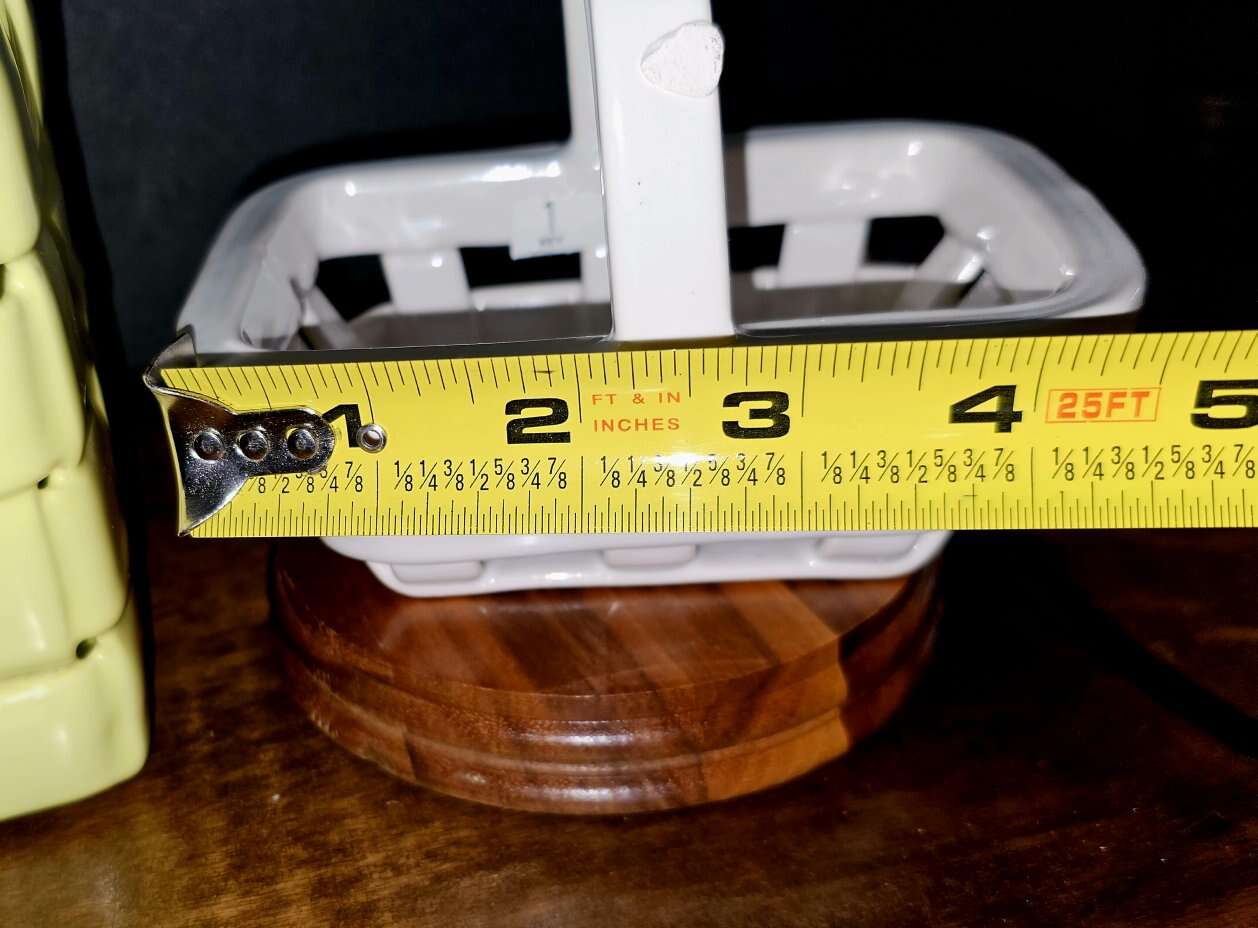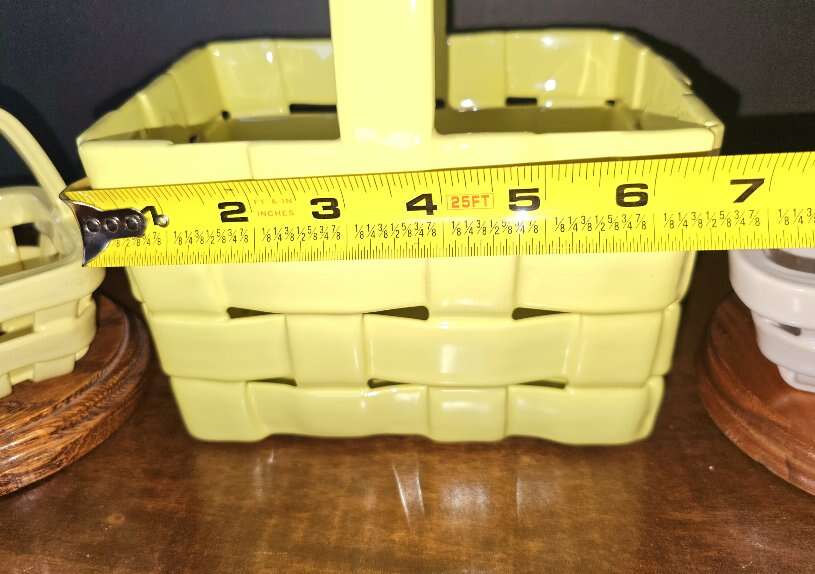 A. Large Yellow = 8" Tall X 7" X 5" and 7" Deep B. Small Yellow = 5" X 4". C. Small White = 4"