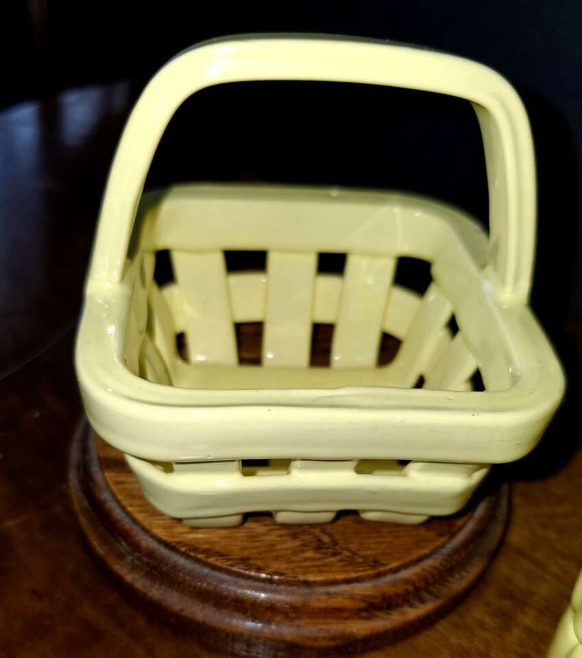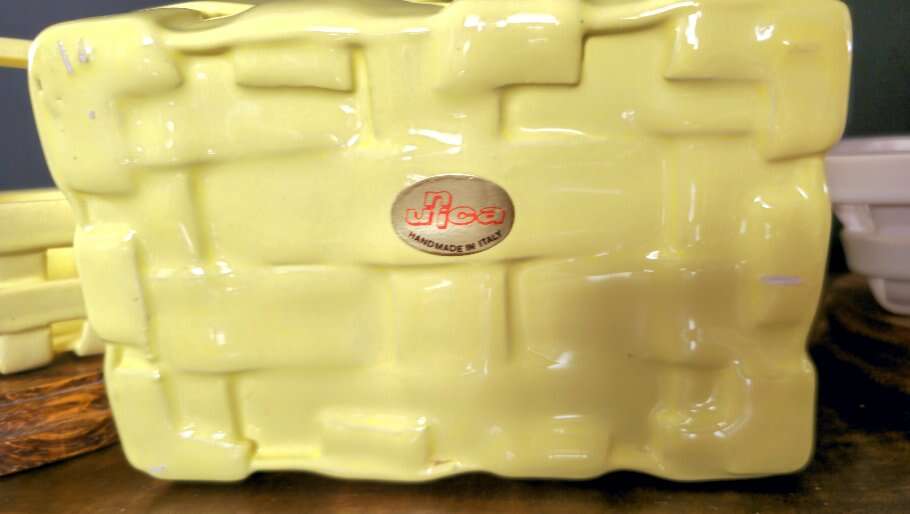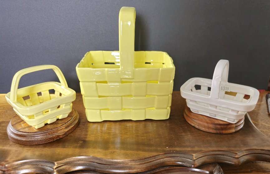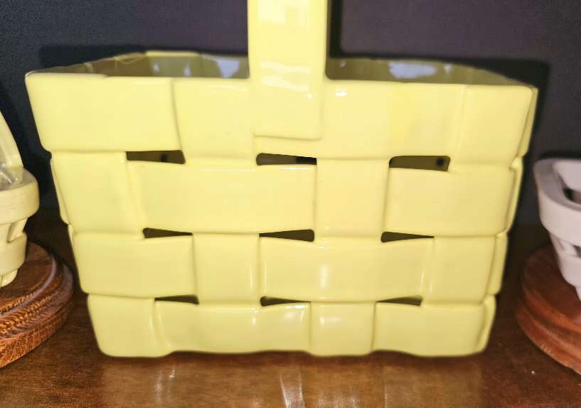 Shiny, pretty, VINTAGE 3 piece Italian Unica ceramic Easter basket set.