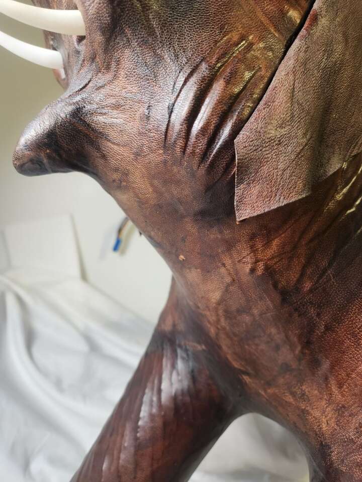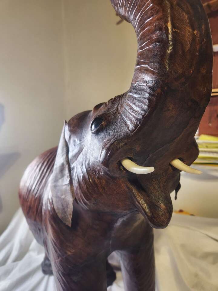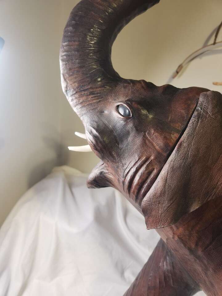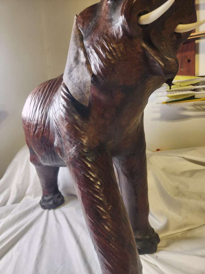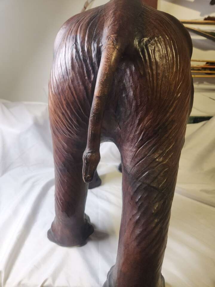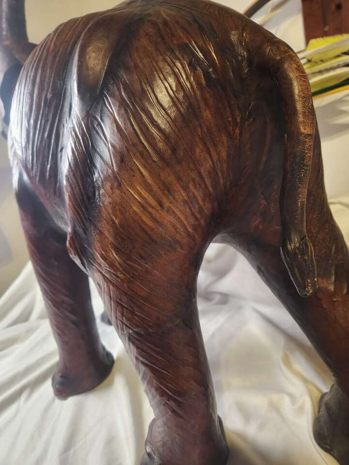 Vintage Elephant Statue Leather Wrapped 18" Tall Large Safari Decor Figure Zoo