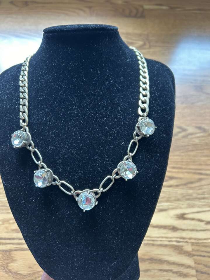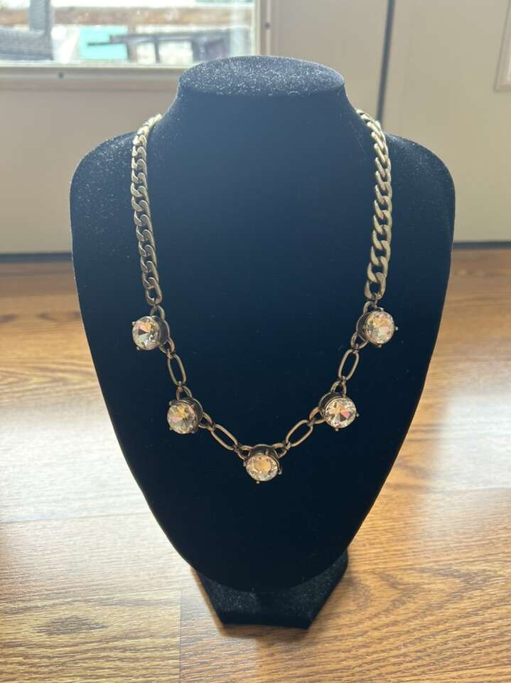 VenmoNew with tags from J.Crew brass rhinestone necklace. Five large rhinestones on the necklace. Necklace measures anywhere from 20 to 23 inches. Clean non-smoking home. Statement piece. Has a vintage feel to it. Cash or Venmo. Porch pick up from Alpine.