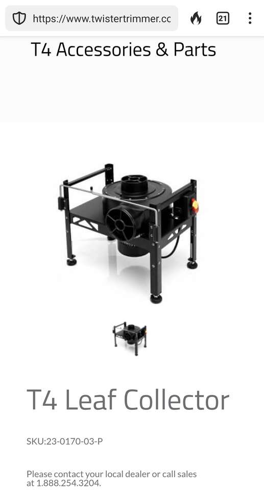 UPC 76625468709 Leaf Collector: The Twister T4 Leaf Collector is the standard vacuum for the Twister T4 and comes ready to work with a 1HP, 750W Fan-Cooled motor. The Twister T4 comes equipt with a 300 micron white collection bag to capture your trim and has 70 & 40 micron bags available as add-ons.