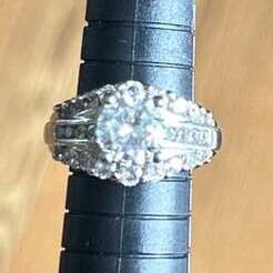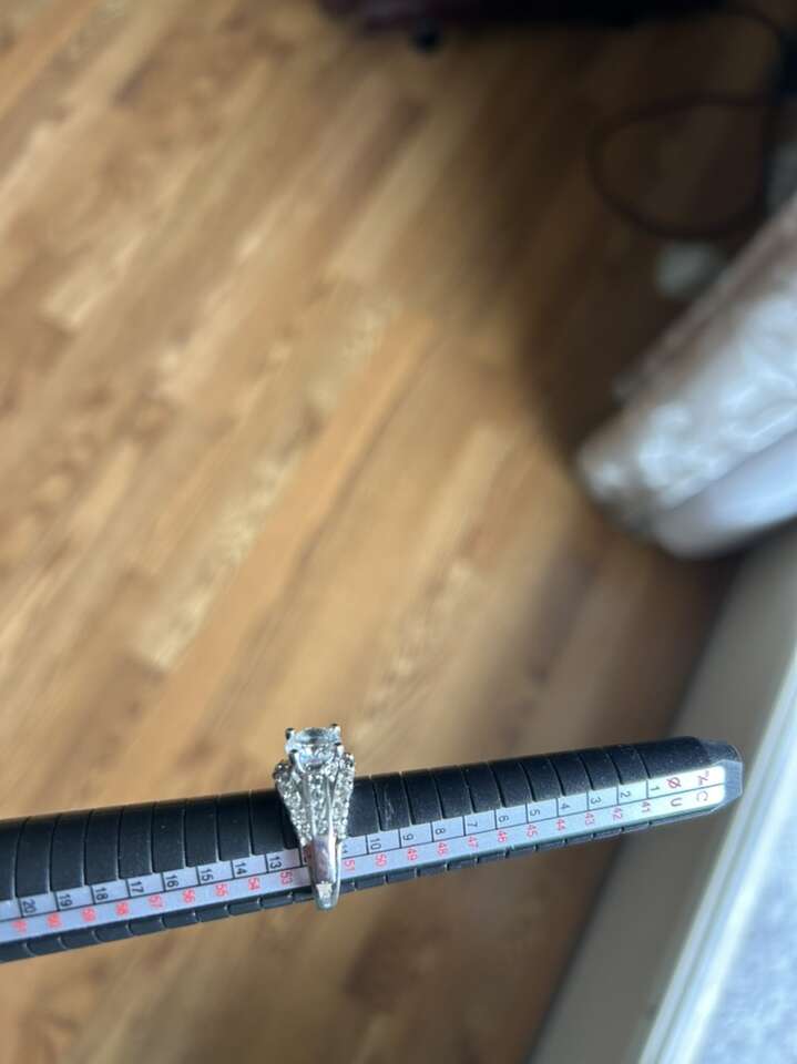 VenmoSize 6 silver band and setting with cubic zirconium stones in like new condition. This is a perfect jewelry when you go on vacation. Clean large center stone, surrounded by three rows of smaller stones. Center stone is held up high to allow for lots of light sparkle and fire from the stones. Non-smoking home cash or Venmo. Port to pick up from Alpine.