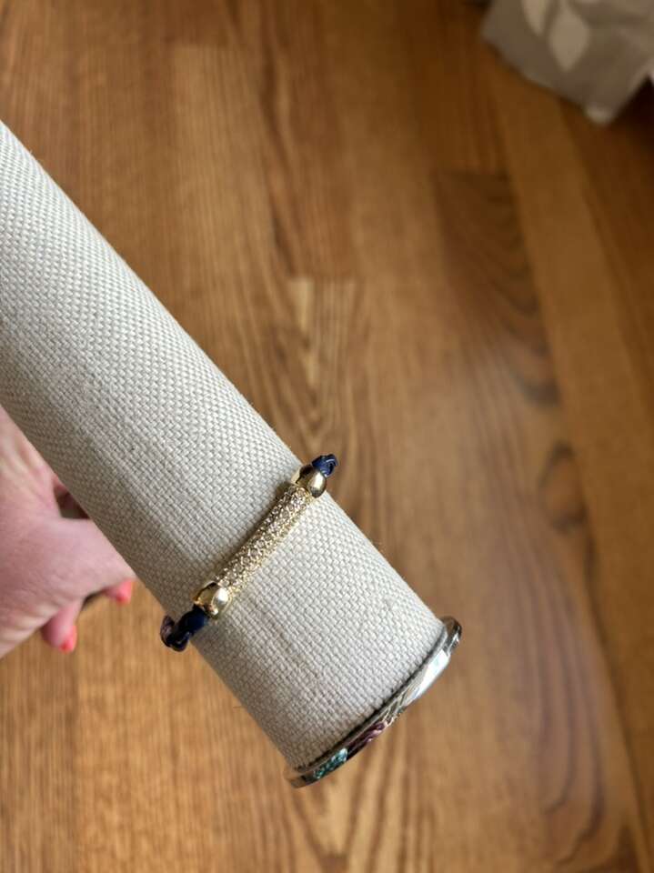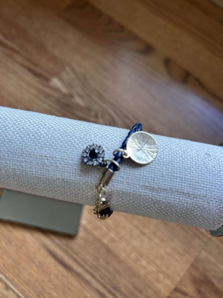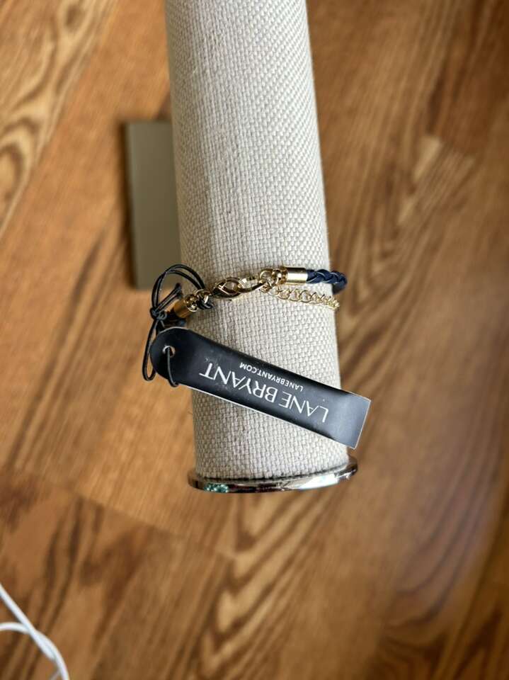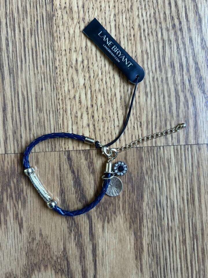 New with tags from Lane Bryant navy blue leather woven braided bracelet with two charms, and Pavi barrel accents in gold tone. Clean non-smoking home. Porch pick up from Alpine. Cash or Venmo.