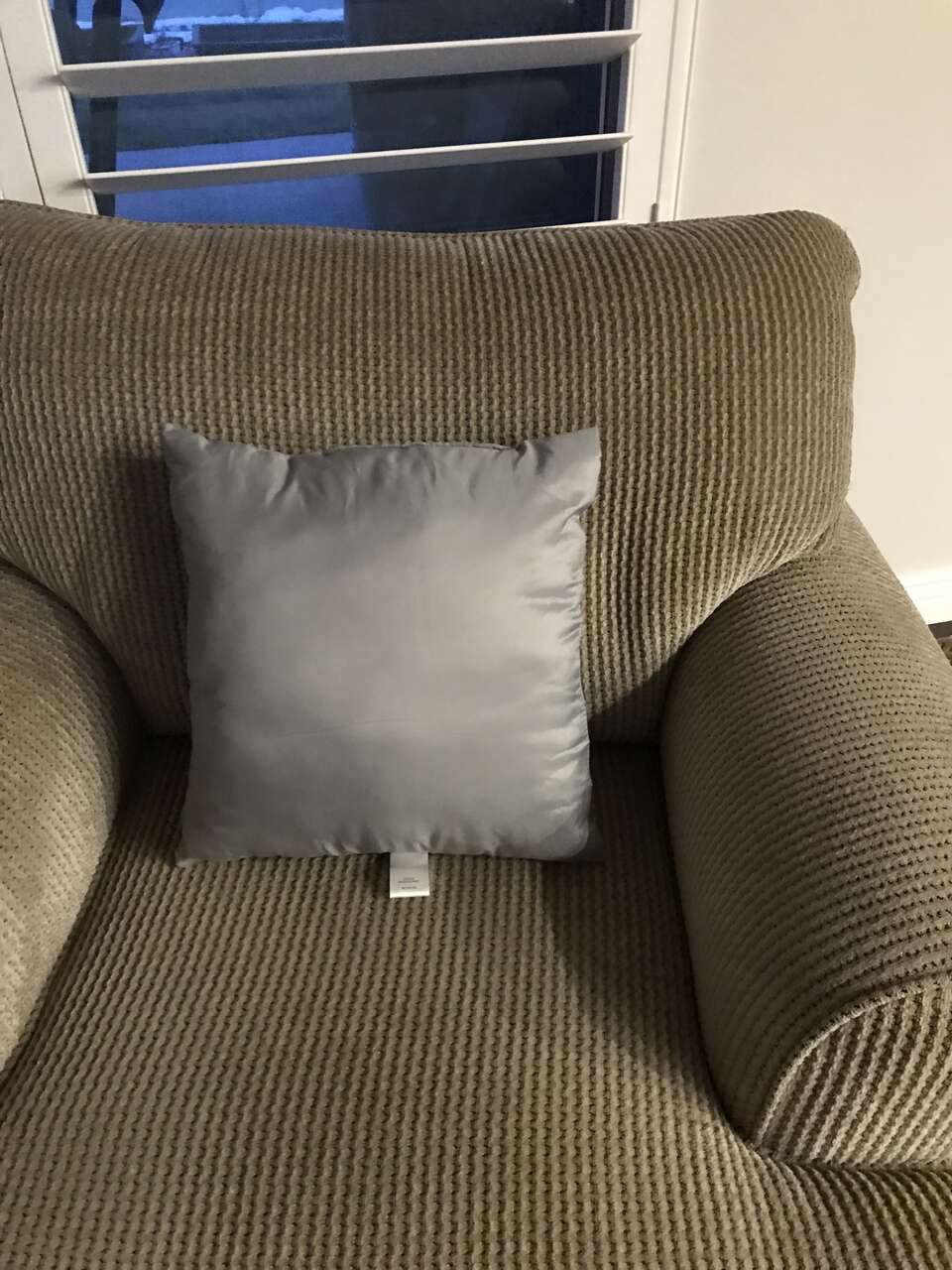I am selling this gray colored pillow for $2.00. The size is 15 x 15 and it is in excellent condition.
