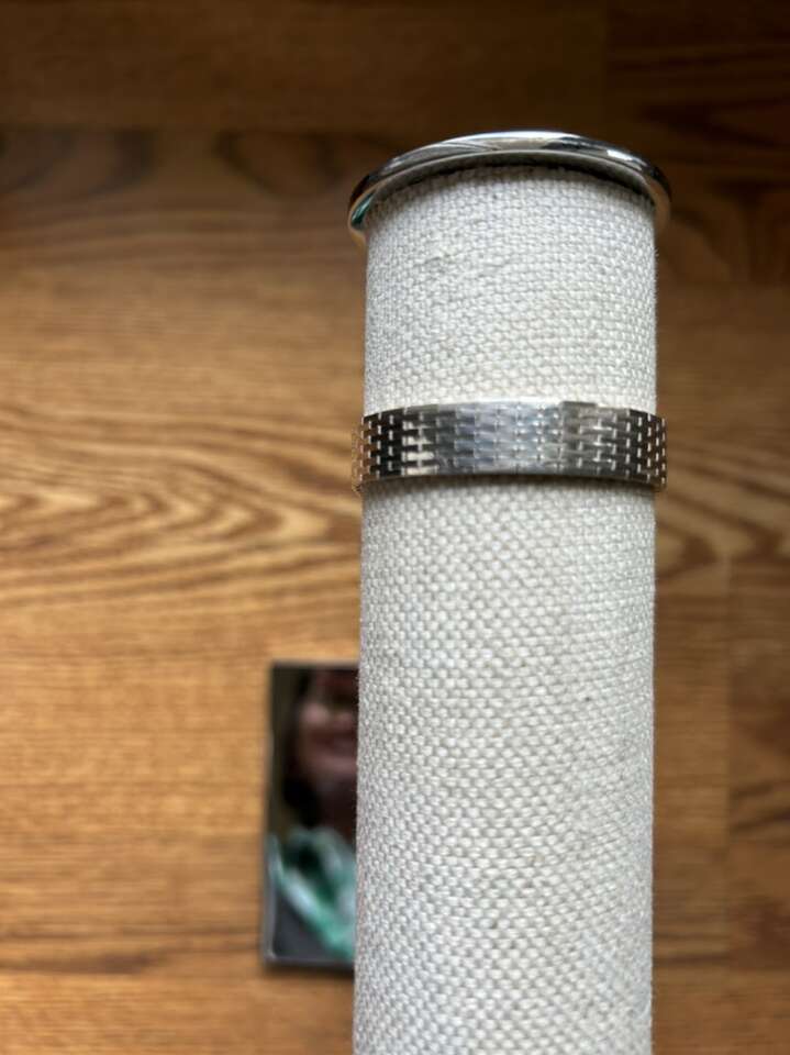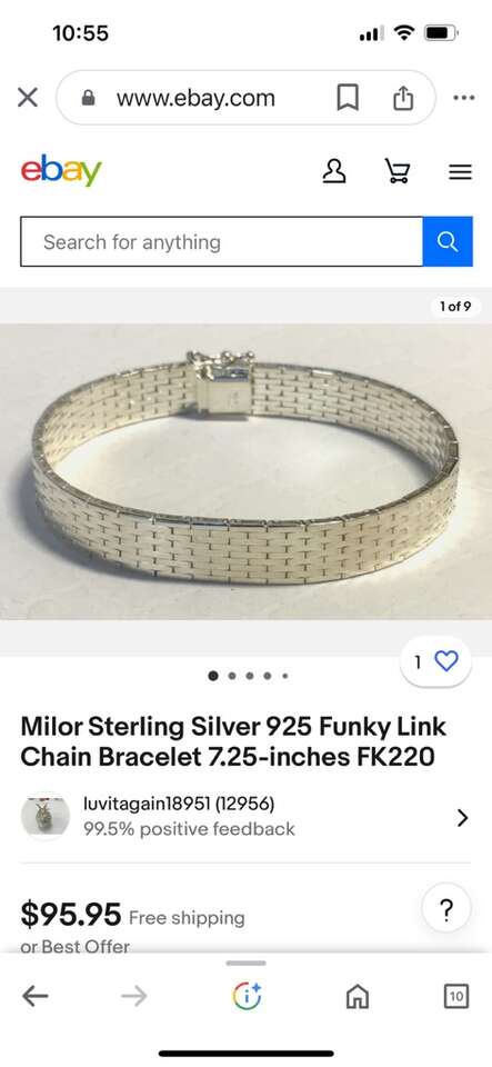 Like new Milor Sterling silver link chain bracelet. Measure 7 1/4 inch in diameter 10 mm in width and one full ounce. In perfect condition. Clean non-smoking home. Stamped Italy, 925. Safety clasp. Statement piece of jewelry. Clean non-smoking home cash or Venmo. Porch pick up from Alpine.