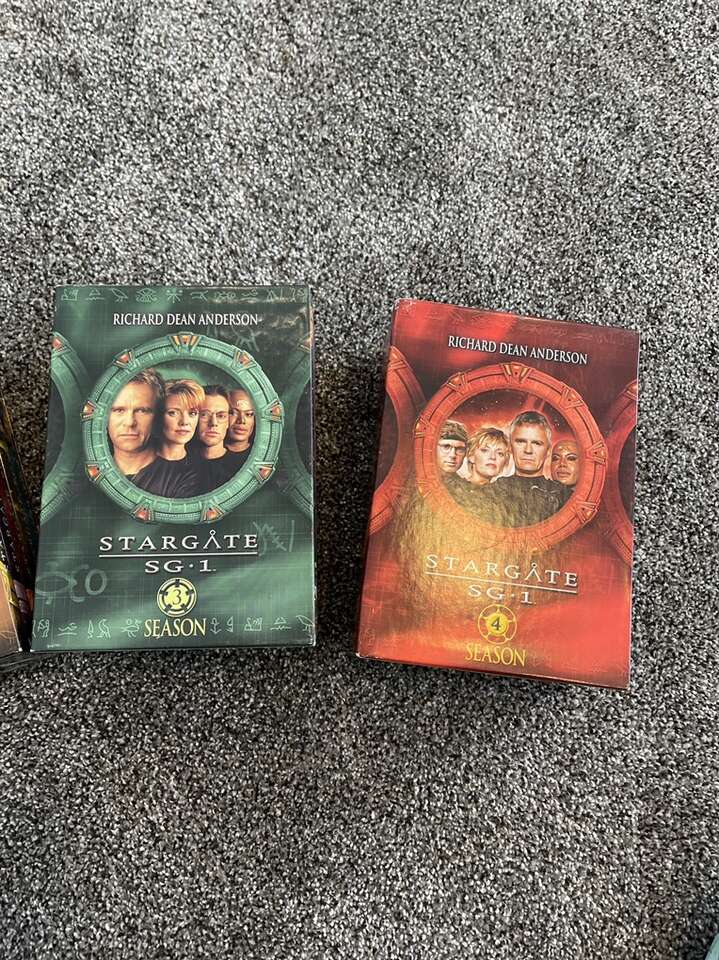 Richard Dean Anderson’s Stargate SG 1 seasons one to four. Each season has five DVD’s featuring the entire season. Great shape!