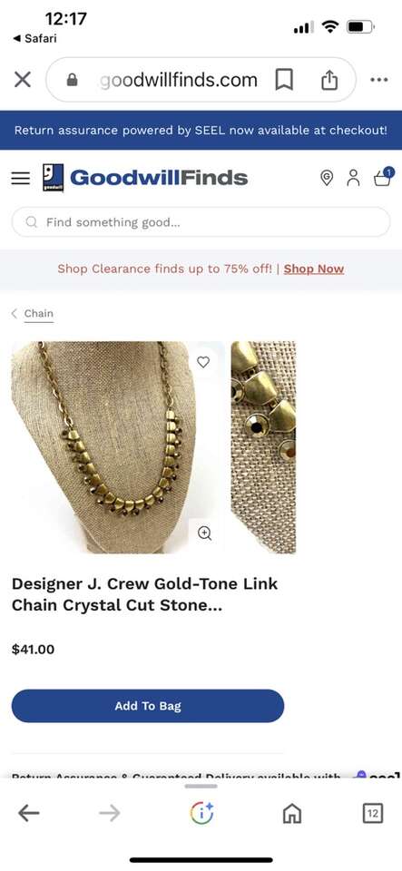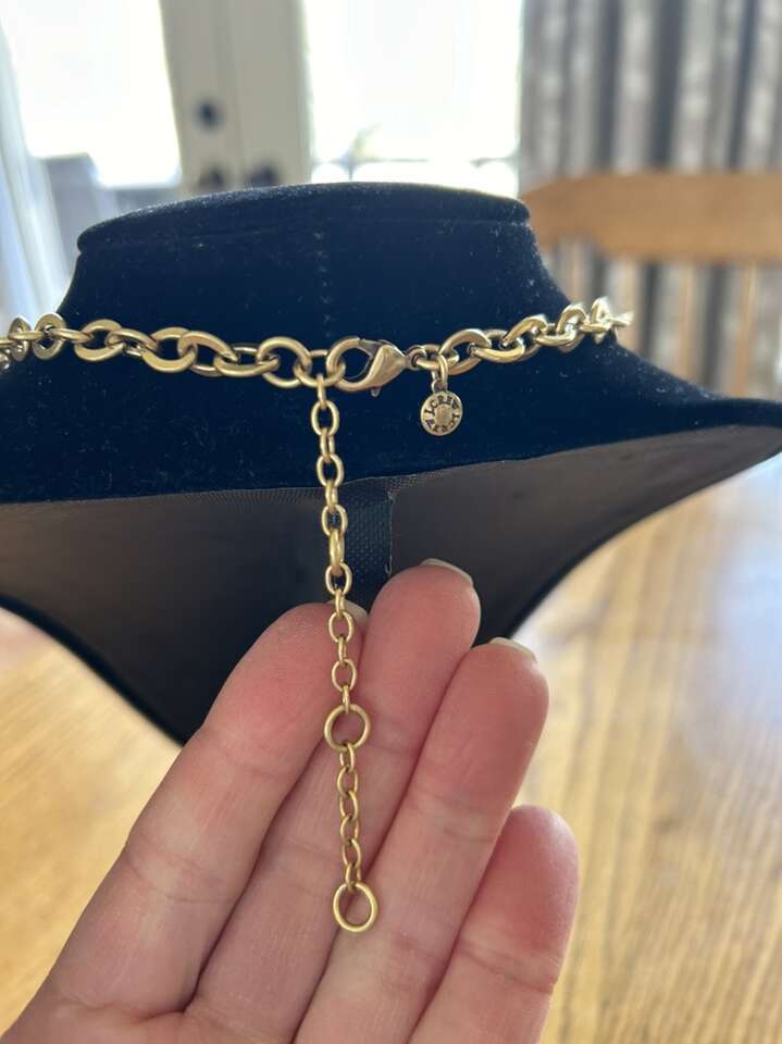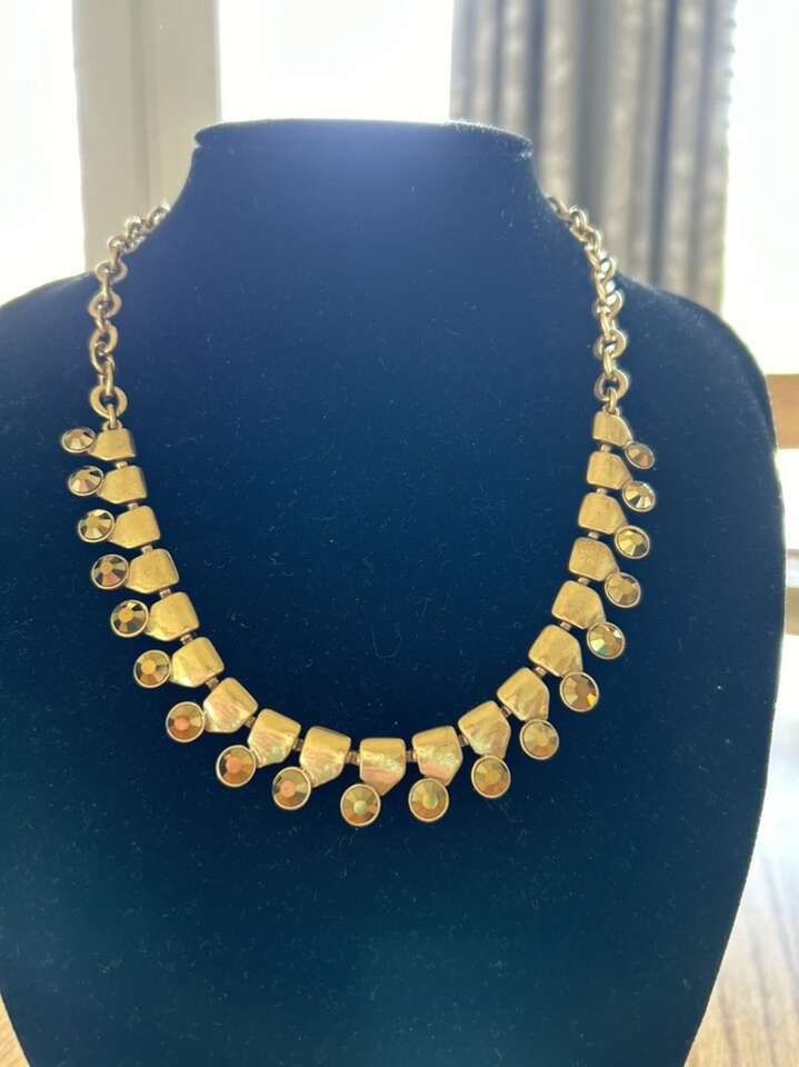 VenmoLike new J.Crew, brass, gold tone, link rhinestone necklace. Beautiful, elegant, luxurious piece. Measure 18 to 21 inches. Clean non-smoking home. Cash or Venmo. Porch pick up from Alpine.