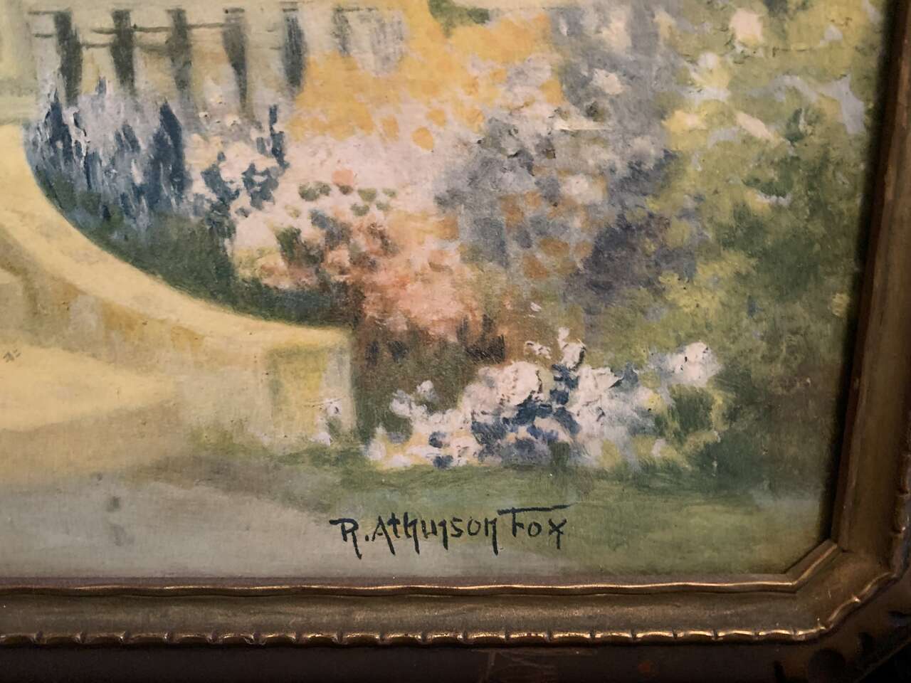 This stunning 1920s art print by Robert Atkinson Fox captures the beauty of nature with its intricate details and vibrant colors. The print is titled "Dreamland," Period correct wood frame.