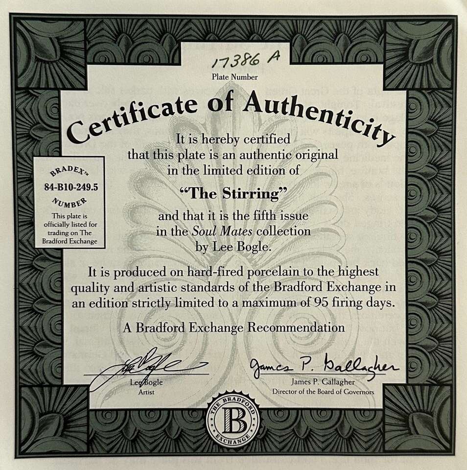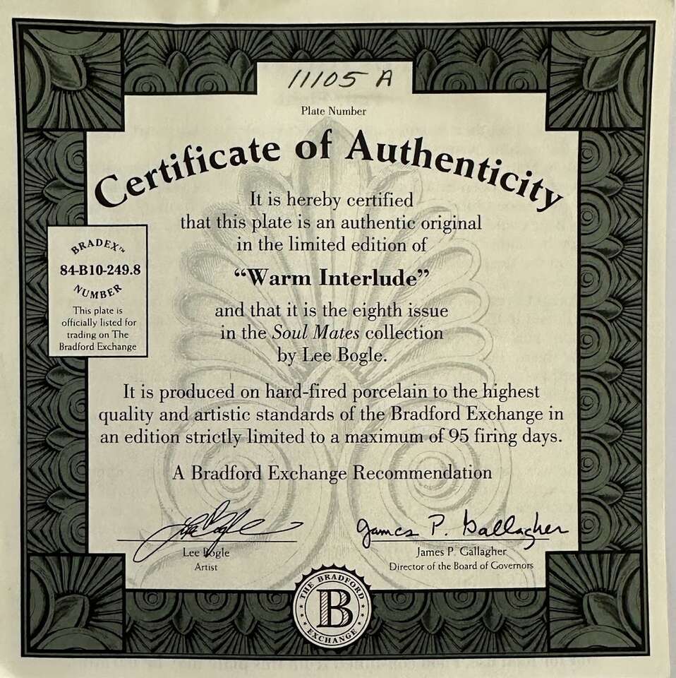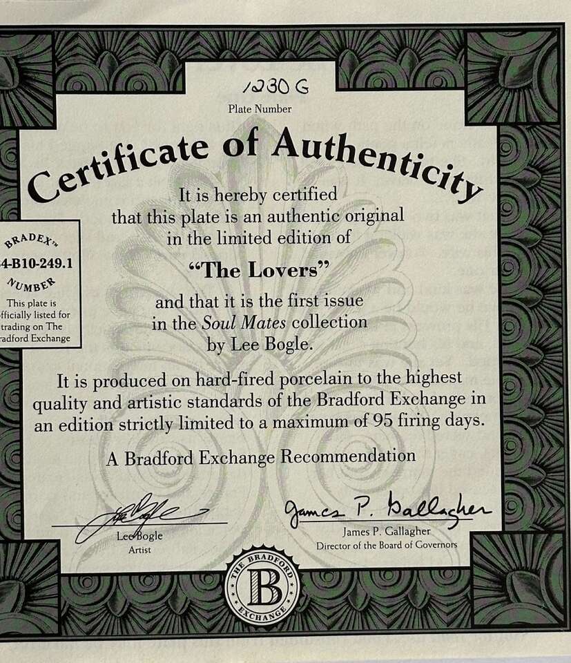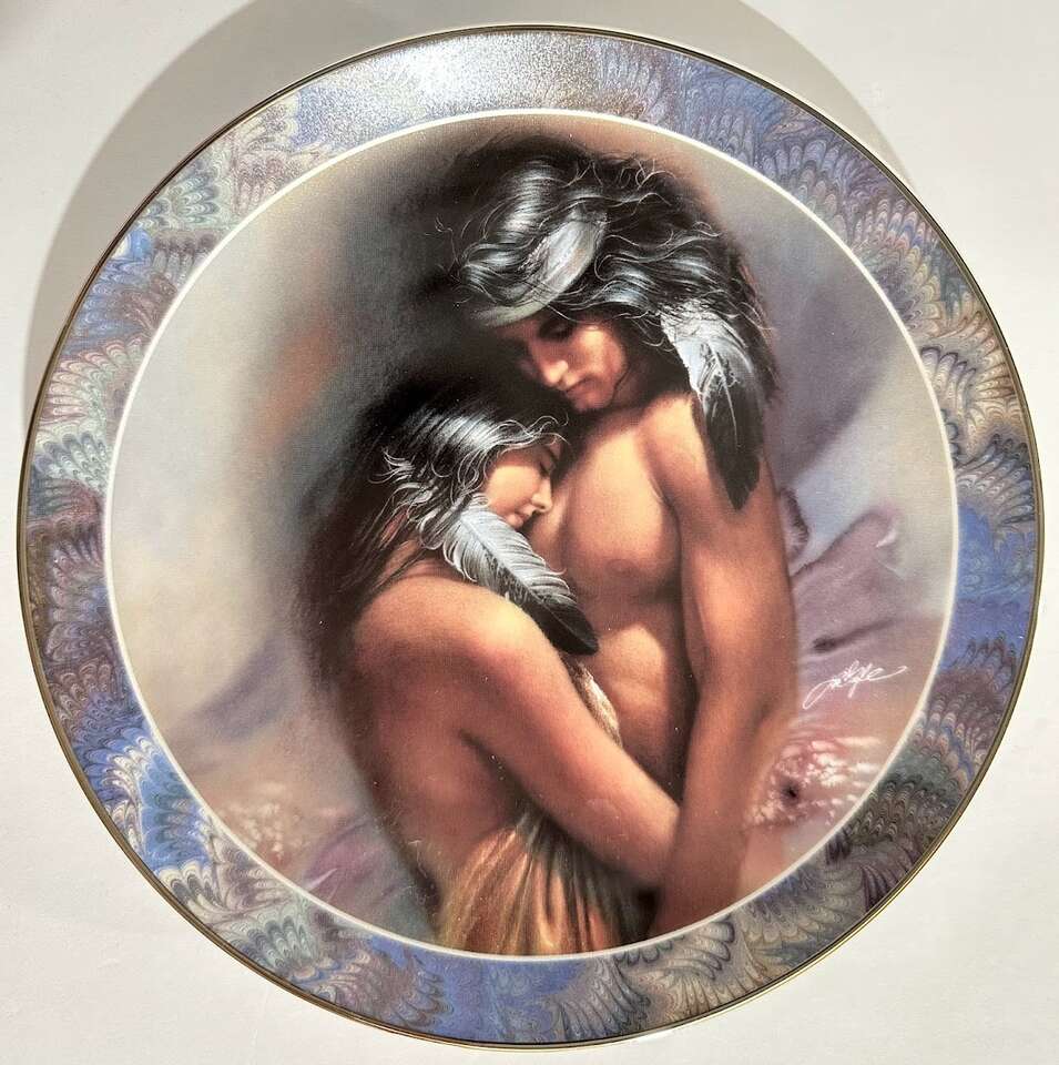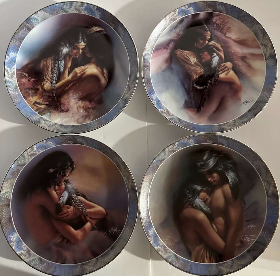 fine porcelain plates, with a romantic theme. These